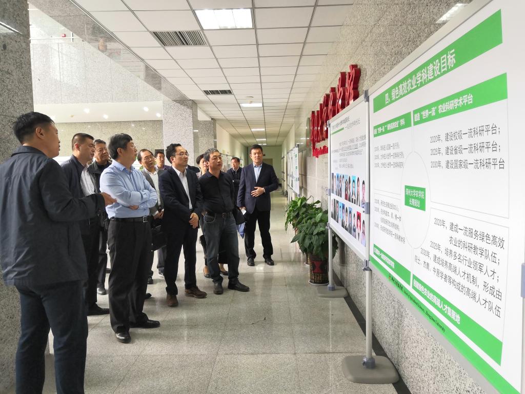 为加快推进一流学科建设,确保各项建设任务落地落实,10月7日,校领导刘炯天、屈凌波、张倩红、谷振清、关绍康、韩国河、吴宏阳、赵明皞一行对学校一流学科建设进展情况进行现场观摩,并召开一流学科建设工作推进会。6个一流学科的学科带头人及学科骨干,学校相关职能部门负责同志参加观摩及会议。7日下午,校领导一行来到农学院,现场调研绿色高效农业一流学科建设情况,听取进展情况汇报,并实地考察了农学院建设情况和棉花生物学国家重点实验室。