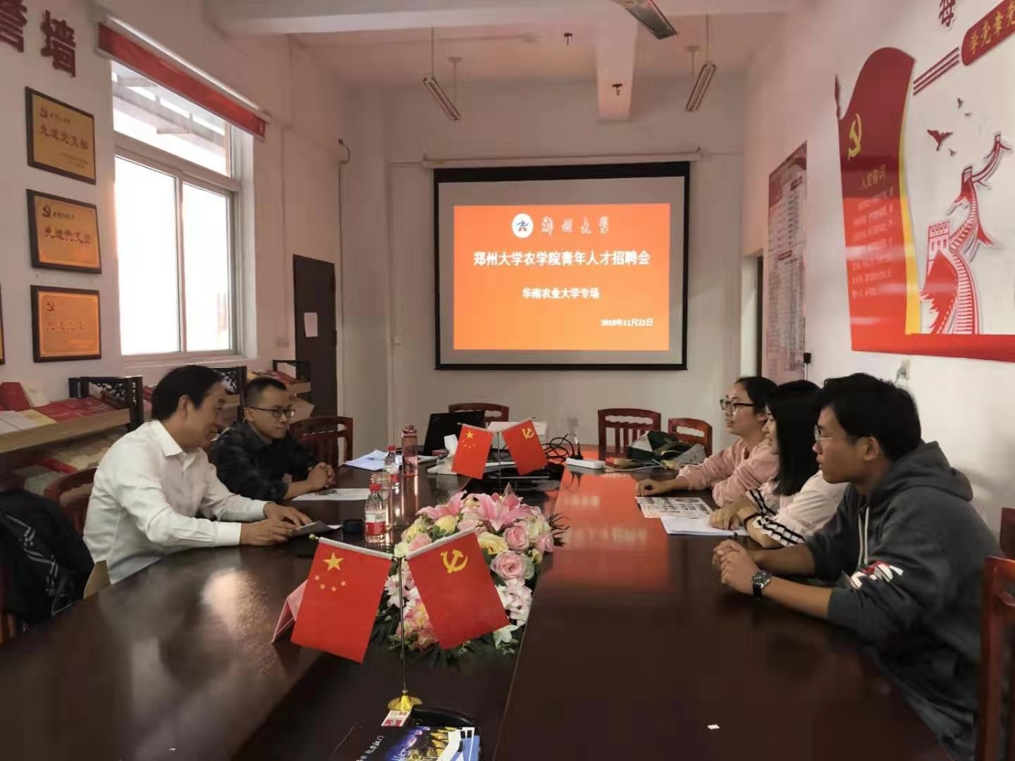 农学院党总支书记白付理同志、执行院长黄进勇教授、副院长位芳教授、华营鹏博士、陆阳博士等先后参加西北农林科技大学、华南农业大学两场招聘活动。学院领导与应聘人员亲切交流,在招聘现场,向前来应聘的博士、博士后介绍学校人才引进政策和农学院建设和发展状况,对应聘人才提出的问题进行答疑解惑。农学院自成立以来首次随团参加专场招聘,共接待海内外优秀博士毕业生50余人,接收简历45份,通过集中展示和大力宣传,加深了社会各界和兄弟院校对郑州大学农学院的认识和了解,提升了学院的知名度和影响力。