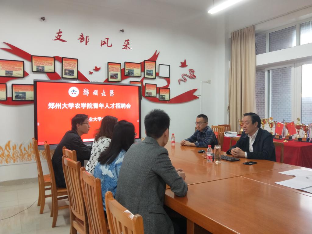 这天上午,白书记一行首先来到农学院向早早在那里等待的青年才俊了解情况、宣传招聘政策、并回答他们提出的问题。之后,马不停蹄,见缝插针,连续到生命科学学院、资源环境学院以及林学与风景园林学院开展博士招聘宣传工作;并与上述学院的有关领导和相关专业的博士毕业生分别进行座谈;依次就河南省、郑州市的区域经济发展和省市政府对高学历人才的科研资助、生活补贴等方面的情况进行了详细介绍;然后,又具体讲述了郑大农学院的招聘政策和相关待遇,并和数名符合条件的青年才俊达成了意向。