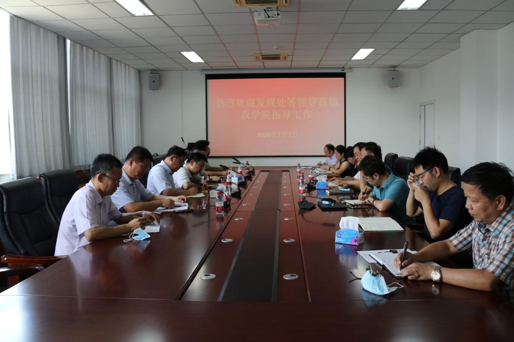 7月7日,发规处处长张玉安、副处长魏忠,学科处副处长吴立鸿,教务处副处长潘志锋,实验室管理中心副主任王志武一行赴农学院开展基层学术组织改革与建设调研,农学院党政班子成员参加调研。调研组一行实地查看学院办公和实验室区域的物理空间设置,对农学院建院以来在空间改造上的工作成果表示肯定,并就进一步合理规划布局、拓展实验室功能区间提出了建议。