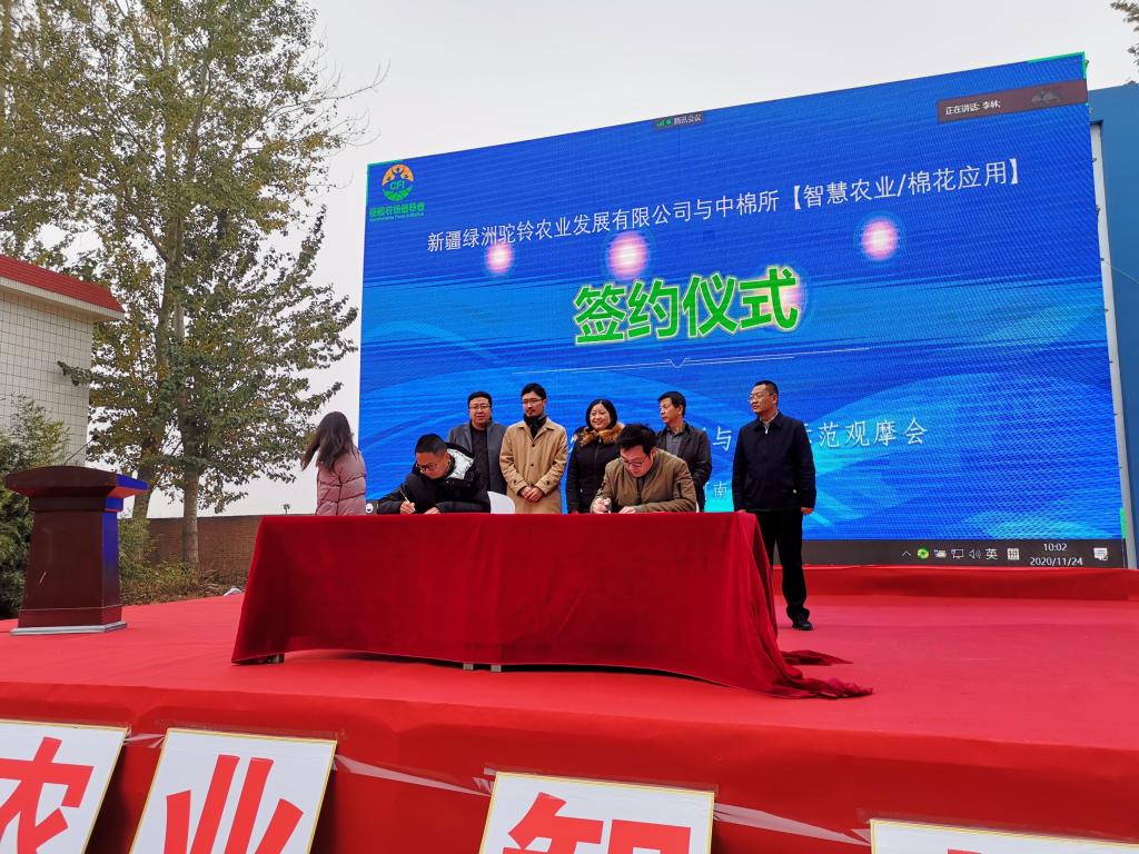 2020年,智慧栽培团队被安阳市高新创业园区列为重点孵化单位。观摩会期间与广西田园、绿洲驼铃、中棉小康等企业,及山东滨州沾化区、山东滨州农喜农业合作社等现场签署了智慧农业科研示范基地建设合作协议。