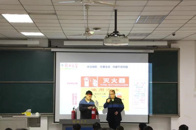 余科长以“关注消防,珍爱生命,共建平安校园”为主题展开讲述。讲到火灾分类时,老师通过举例近几年高校发生的火灾案例,强调电气火灾在校园火灾中的重要地位,师生应加强防范;对于消防设施,余老师亲自示范使用方法,同学们对此兴趣颇高并积极与老师进行互动;接着,余老师对校园发生火灾怎么办以及如何防范校园火灾进行了细致的讲解,并温馨提醒大家要及时备份自己的实验数据。