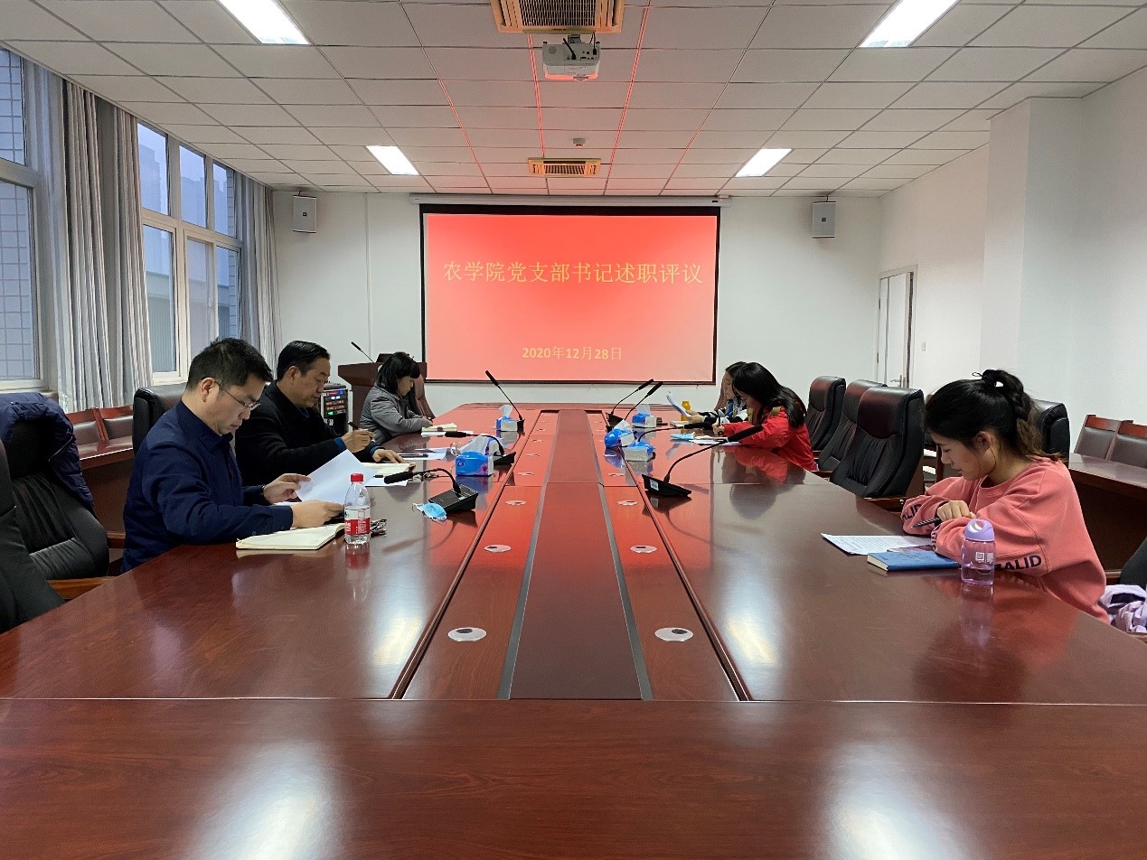 为加强党的组织体系建设,全面提升党支部组织力,强化党支部政治功能,根据郑州大学《关于组织开展2020年度基层党组织书记抓基层党建述职评议考核工作的通知》文件要求,2020年12月28日下午,我院党总支在农学院二楼会议室召开2020年度党支部书记述职评议会。会议由党总支书记白付理同志主持,党总支副书记李珏以及6位支部书记参加会议。