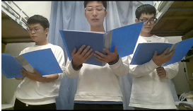 联欢会不仅节目数量多,节目内容形式更是丰富。为晚会拉开序幕的爱国诗朗诵慷慨激昂;形式新颖的手势舞让人眼前一亮;既有二胡、古筝传统音乐的悠扬清脆,又有现代流行音乐的甜美嗓音;表现同学们在疫情时期不懈努力学习、奋斗前进的小品令人会心一笑;为同学们展现宿舍志愿者默默付出的演讲让我们感动;最后所有人一起歌唱祖国和开幕的诗朗诵前后呼应,将联欢会的气氛推向高潮,为同学们在宿舍带来了一场线上盛会。