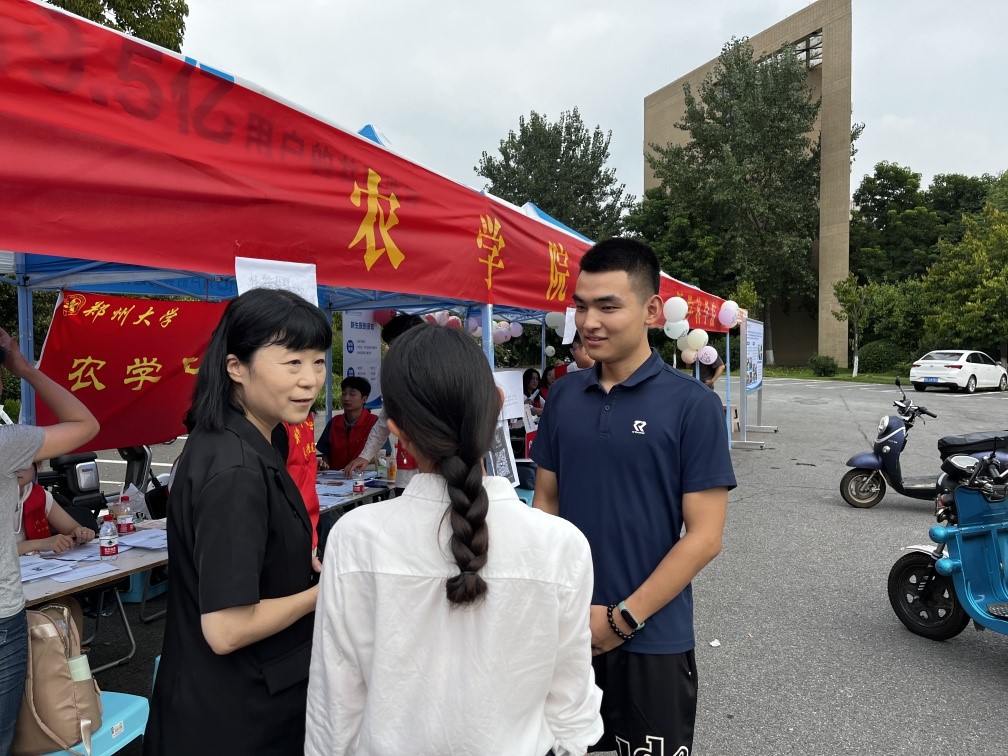 从晨昏到日落,志愿者们满怀热情地迎接每一位新同学。秋风送爽,天朗气清。经过一天紧张有序的迎新工作,在学院领导的关心支持下和志愿者同学的辛勤服务下,农学院2023年度的迎新工作圆满完成。这是一场期待已久的相遇,农学院2023级研究生新生朝气蓬勃迈入郑大,怀着对未来的无限憧憬,将在农学院的天地里,开启人生全新的篇章。相信他们在今后的日子里以积极的态度去面对未来,勇敢奔赴、得偿所愿。随着新鲜血液的加入,农学院学生队伍不断壮大,相信每一位学生都会在学院领导和老师们的带领下,积极进取,取得新成就,为学院做出贡献。(摄影:杜笑千 撰稿:郭庆芳 排版:郭庆芳)。