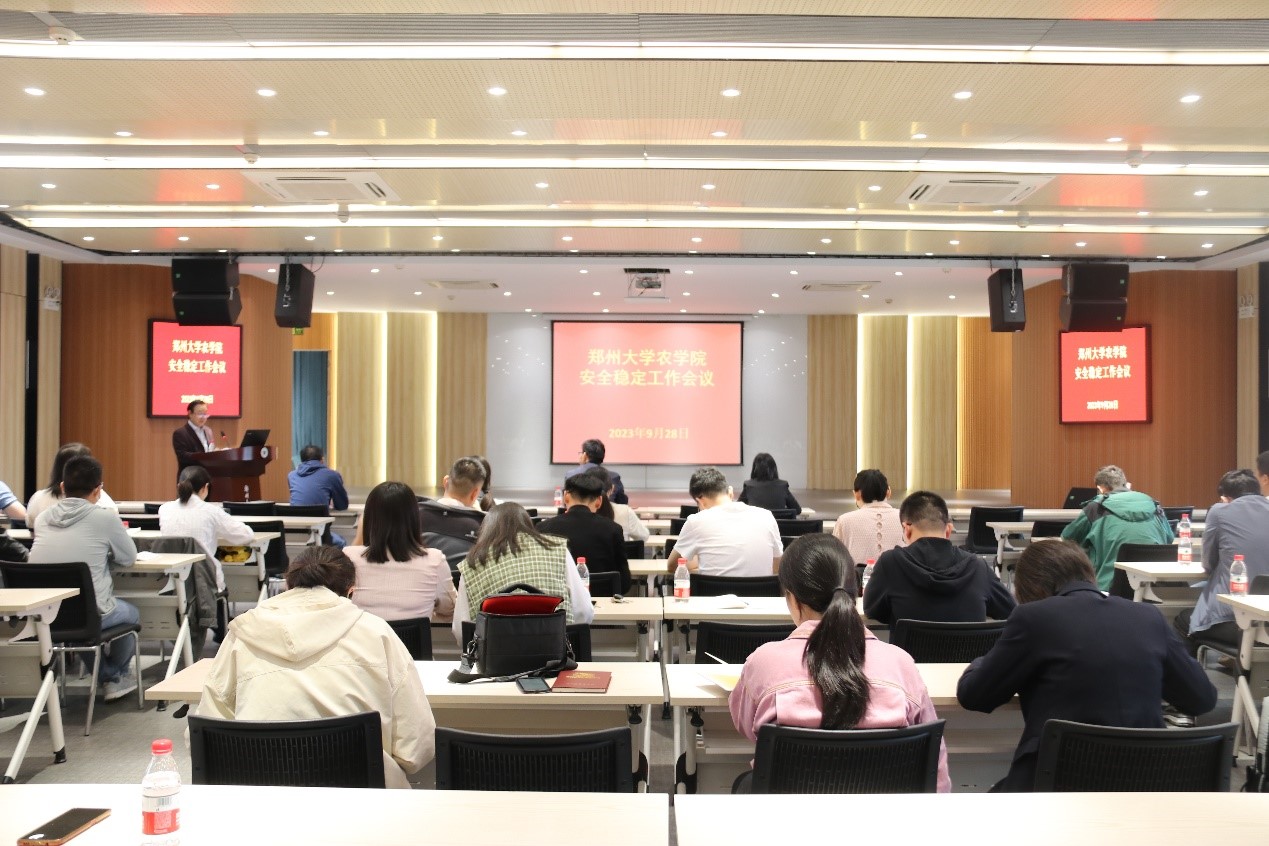 为深入学习贯彻习近平总书记关于安全稳定的重要论述和指示批示精神,全面落实学校关于安全稳定工作的决策部署,9月28日下午,我院召开安全稳定工作专题会议,传达了学校有关会议精神,并安排部署了中秋国庆假期安全稳定保障工作。会议由党总支书记白付理主持,学院党政领导班子成员和全体教职工参加了会议。
