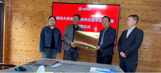 座谈会后,举行了“郑州大学农学院研究生实践教学基地”授牌仪式,由白付理代表学院向河南欧兰德种业有限公司授牌。