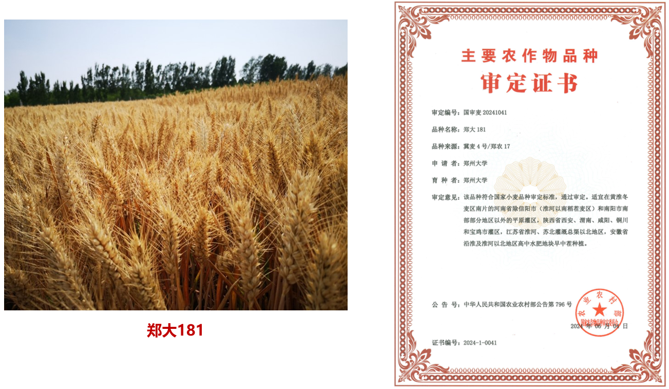 根据《主要农作物品种审定办法》、《农业植物品种命名规定》和《国家农作物品种审定委员会章程(试行)》,经第五届国家农作物品种审定委员会第四次主任委员会会议审定,我院焦浈教授团队自主培育的小麦新品种“郑大181”顺利通过国家审定。
