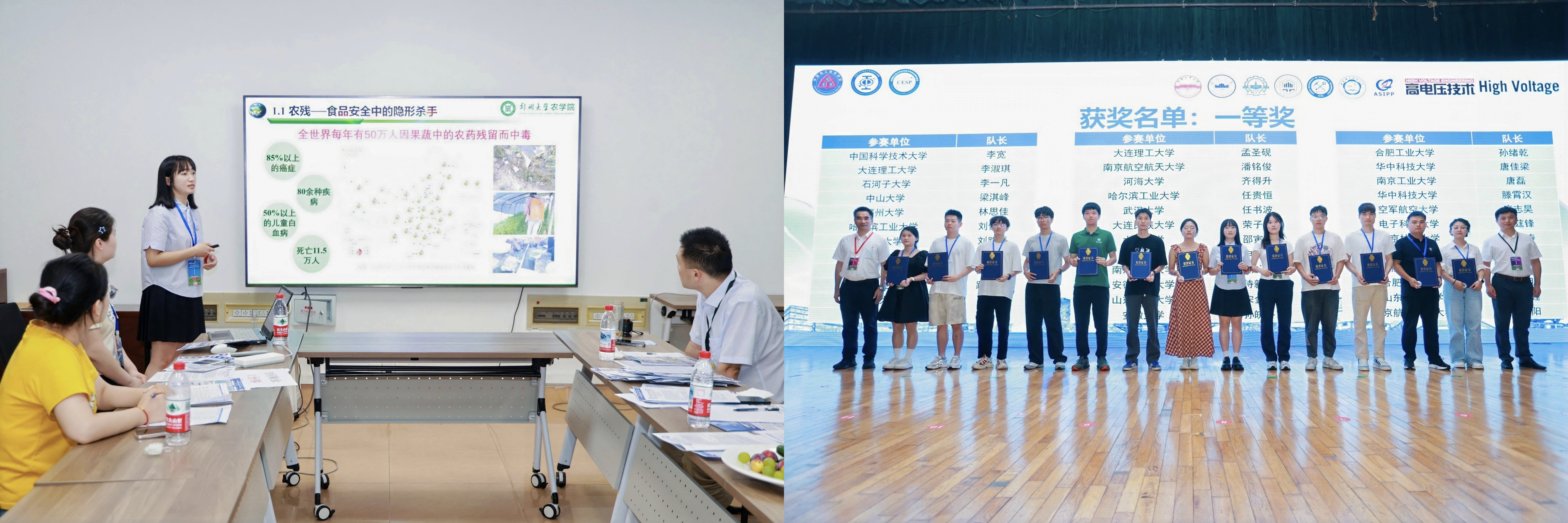 队长王进杰进行项目汇报(左)和代表团队领奖(右)