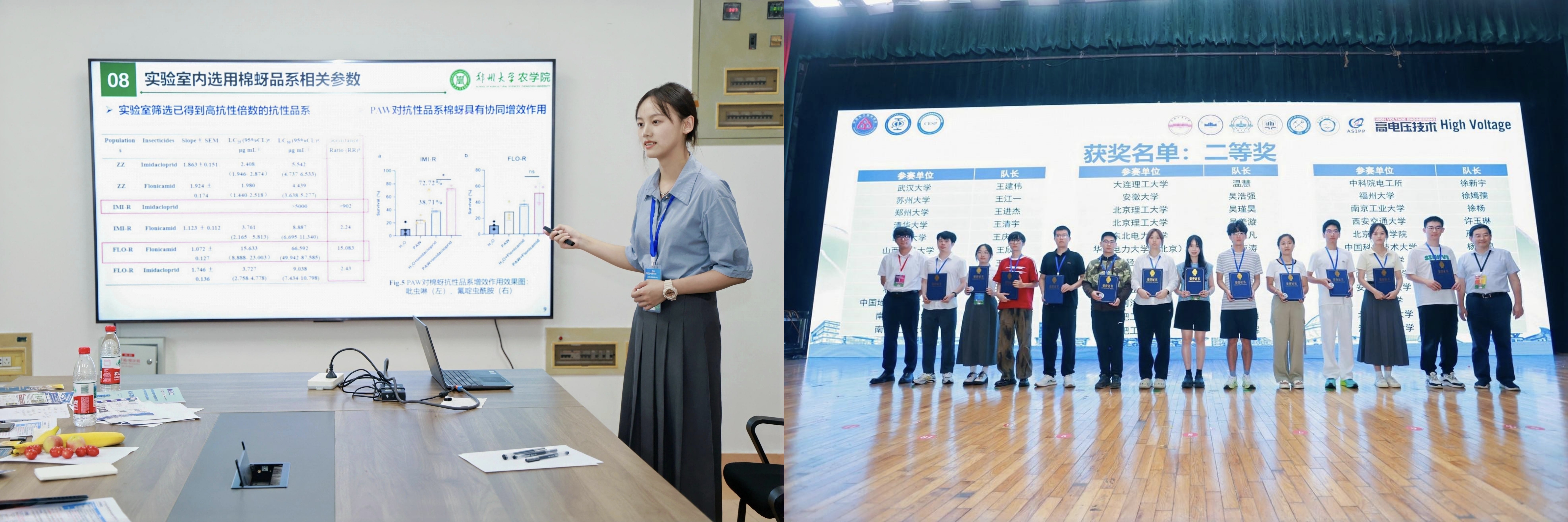 全国二等奖作品(自主创新类A-绿色环保赛道):由王进杰、徐萃、赵路瑶、尚薇薇等同学完成的《农田“水先锋”PAW开启农药“减量-增效”绿色革命》,指导教师为马若男,焦浈。该项目聚焦前沿的等离子体活化水技术,探索其在农业生产中实现农药科学减量施用、同时显著提升农药效能的应用路径。