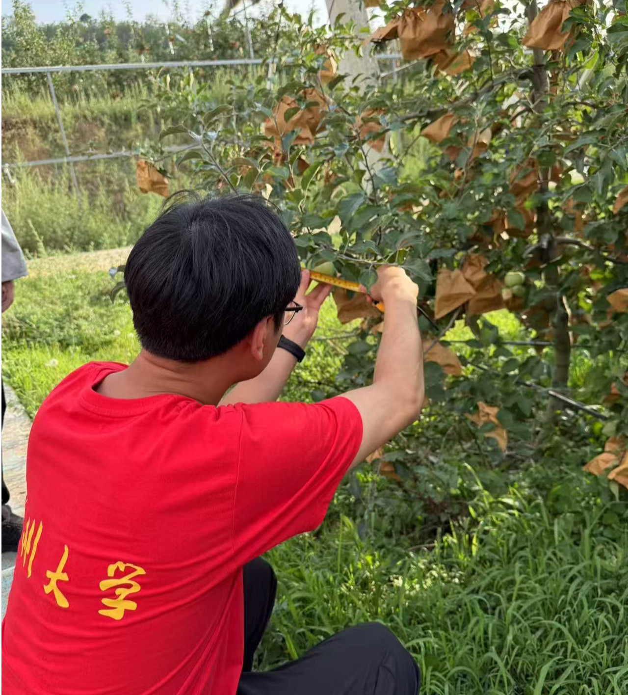 在三门峡鑫生源绿色果业有限公司测量果品生长大小