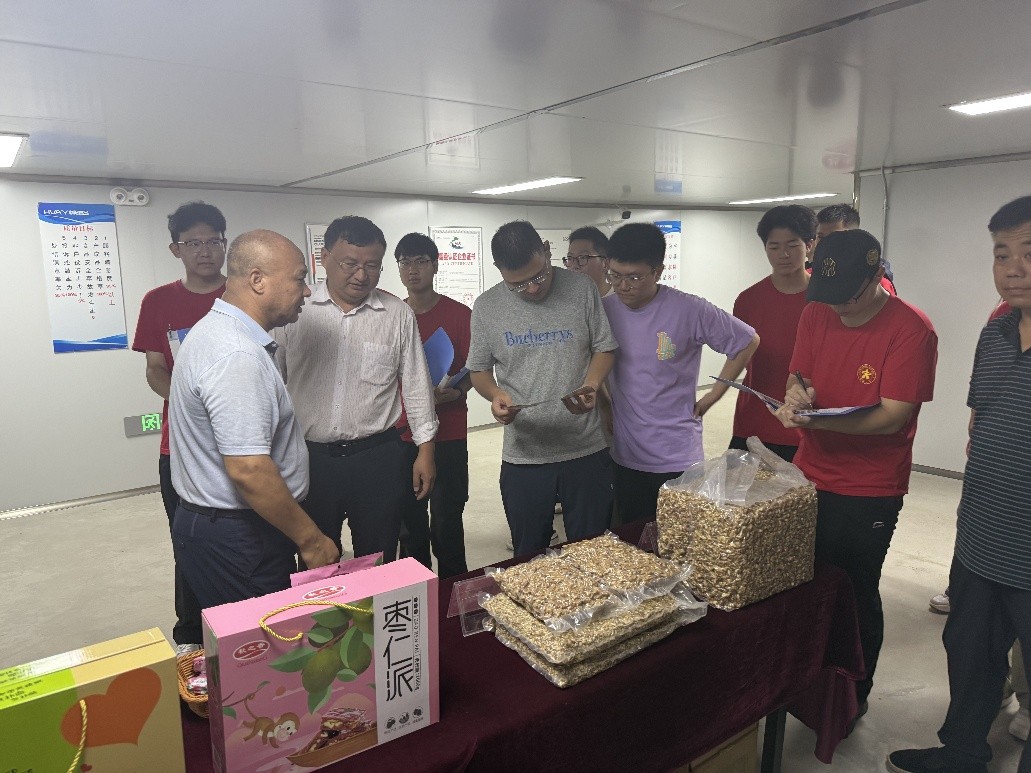随后,实践团走进华阳食品,实地考察核桃加工环节。华阳食品作为当地核桃加工的重要企业,采用先进的生产设备和工艺,将卢氏核桃进行深加工,生产出多种核桃制品,有效提升了核桃的附加值。在参观过程中,师生们与企业技术人员深入交流,了解到当前核桃加工产业面临的技术难题以及市场需求。农学院的实践团凭借自身专业知识,就核桃种植品种优化、加工原料品质提升等问题与企业探讨,为促进核桃产业的现代化发展出谋划策。这一实践活动紧密围绕国家推动农业产业现代化、提升农业产业链供应链现代化水平的战略方向,将理论知识与生产实践相结合,助力乡村产业振兴。
