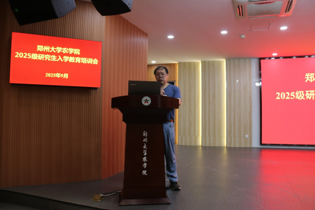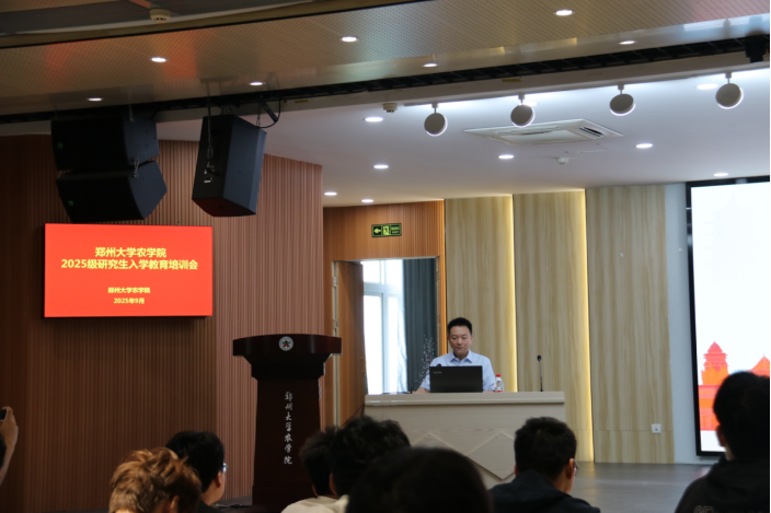 为帮助2025级研究生新生深入了解学校与学院发展概况,明确学业科研方向,快速融入校园生活,2025年9月8日-9月14日,郑州大学农学院在313报告厅举办2025级研究生入学教育培训会。党委书记苏伟、执行院长焦浈、党委副书记段武俊、副院长位芳、教学办公室主任庞会利和2025级辅导员殷湘坤出席会议,2025级全体硕士研究生和博士研究生参加会议,会议由团委书记冯小杰主持。