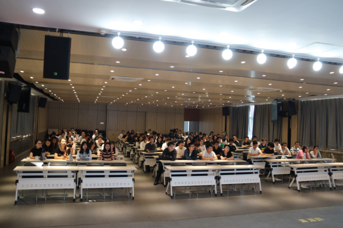 团委书记冯小杰详细讲述了党员发展流程,鼓励大家积极向党组织靠拢,告诫大家平时需以党员的标准要求自己。在奖助学金评选制度方面,详细介绍各类奖助学金的评选条件、评选流程和奖励标准,特别是科研成果认定方面,激励所有新生在学习和科研中努力进取。