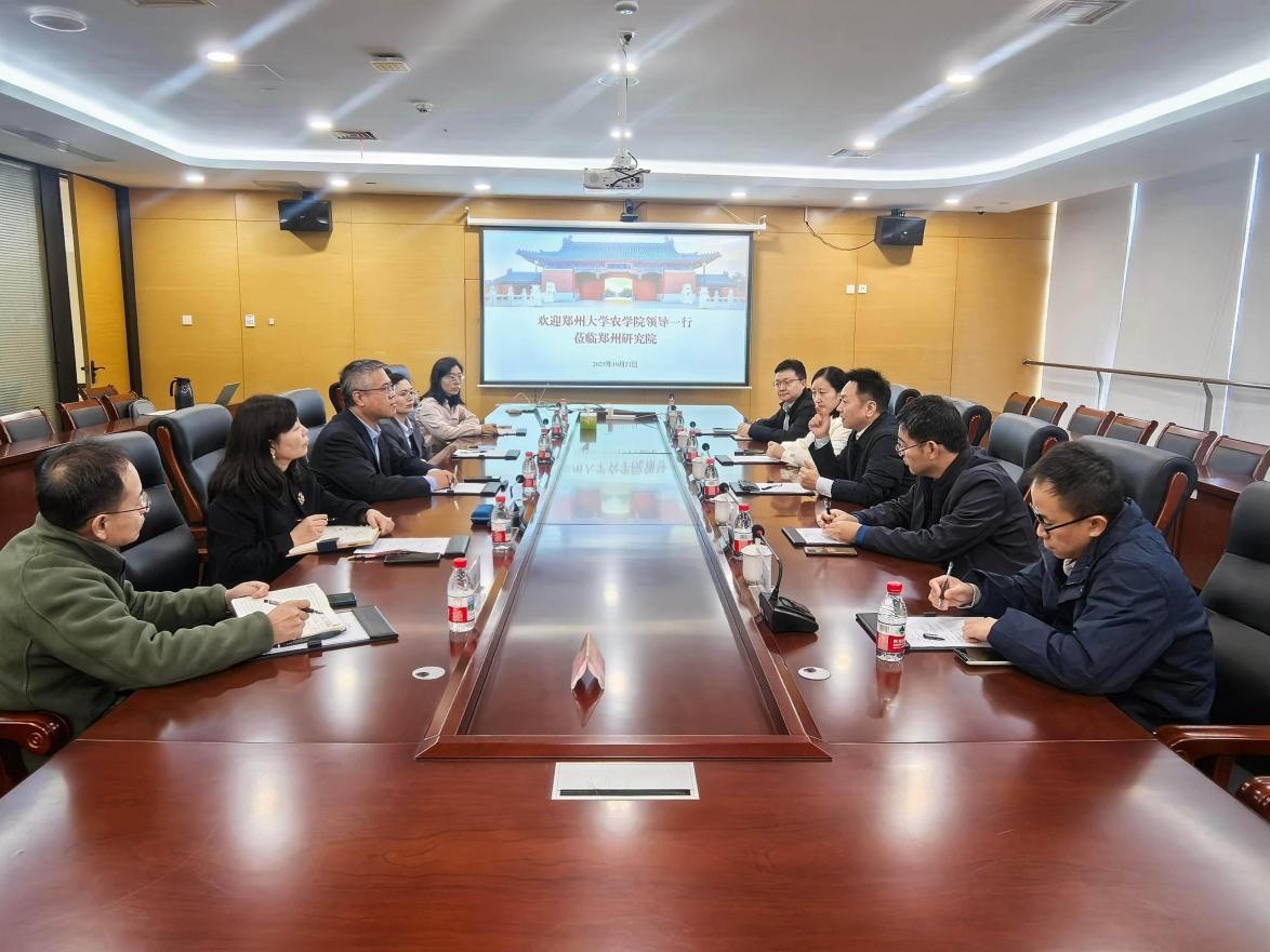 李剑执行院长代表上海交通大学郑州研究院欢迎苏伟一行来院调研交流,感谢郑州大学对研究院发展的大力支持。他表示,研究院作为省校共建的新型研发机构,将充分发挥上海交大学科与人才优势,与农学院共同打造“农业科技+新兴技术”融合创新样板,助力河南区域经济发展与乡村振兴战略。
