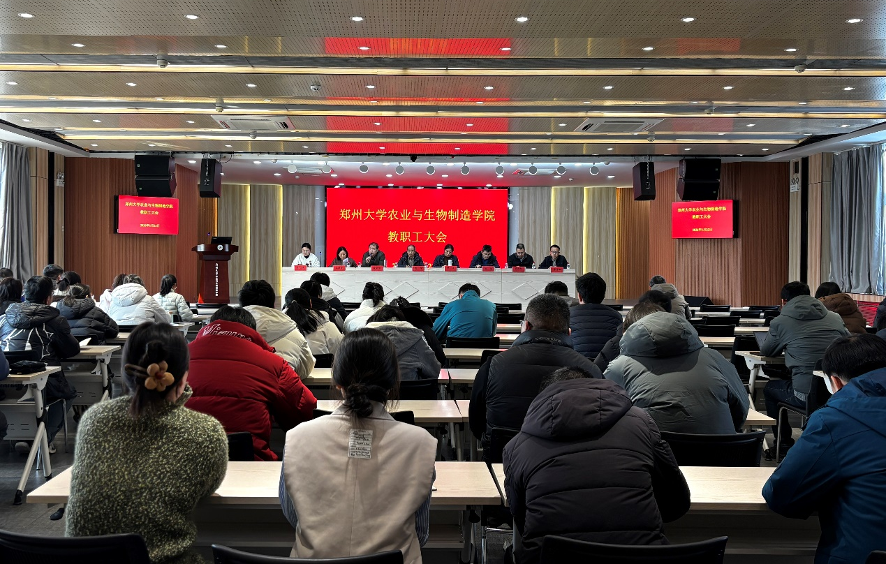 2026年1月22日,郑州大学农业与生物制造学院召开全体教职工大会。学院党委书记高宇、党委副书记段武俊、副院长商海红、位芳、王雁萍、华营鹏和王文静出席会议,会议由党委副书记、执行院长焦浈主持。