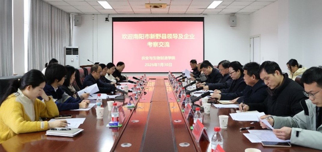 2026年1月30日,南阳市新野县委常委、组织部部长贾志杰带领相关部门及企业负责人一行来院交流访问,双方围绕校地校企合作开展深入座谈并举行签约仪式。郑州大学农业与生物制造学院党委书记高宇、执行院长焦浈等学院领导班子成员出席活动。