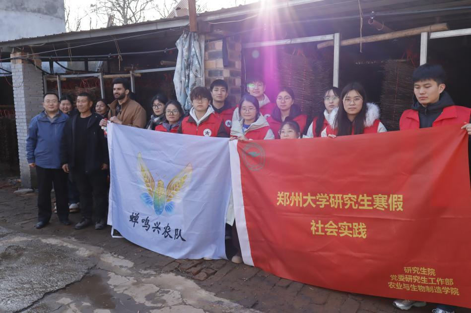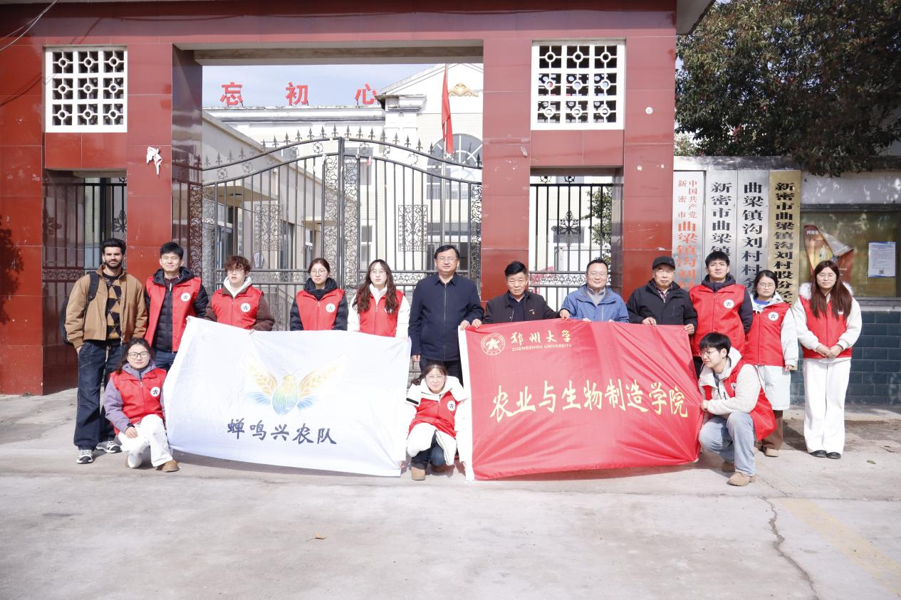 为深入贯彻落实乡村振兴战略,切实破解金蝉养殖产业发展中的实际难题,推动高校专业科研优势向乡村产业发展动能转化,2026年2月9日-12日,农业与生物制造学院“蝉鸣兴农”实践团一行,在工会主席曹刚强教授、植物病虫害绿色防控团队邓中原教授的带领下,赴新密市开展寒假社会实践活动。实践团以“科技护蝉助农、服务乡村振兴”为主线,先后走进小时候农场、好想你红枣小镇绿彩杨公司、沟刘村党群服务中心、曲梁袁庄和新密袁庄乡金蝉养殖示范基地,聚焦金蝉养殖病虫害防治、林下种养模式优化、产业政策落地等产业发展痛点难点,通过实地走访、技术访谈、座谈交流、数据采集等方式开展深度调研与技术服务,为金蝉特色农业提质增效精准施策、用专业力量贡献高校智慧。