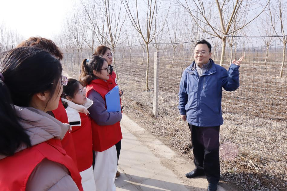 在好想你红枣小镇绿彩杨公司,实践团将调研重点放在林蝉绿色种养融合模式的实际运行难题上。针对该基地“金蝉 + 绿彩杨” 种养模式中,林地密度、水肥管理与金蝉生长繁育的适配性问题,队员们实地踏勘标准化种养林区,测量林地立地条件、记录植被配置对金蝉生长的影响,系统梳理技术适配性、成本控制、效益提升等模式推广中的共性瓶颈。通过与企业负责人深度座谈,团队详细了解该模式在推广过程中遇到的规模化复制难点、生态与经济双效益平衡痛点,并围绕种养技术优化、风险防控体系搭建等问题展开研讨,从高校科研视角提出兼具专业性与实操性的改进思路与建议,助力企业突破林下协同发展制约。