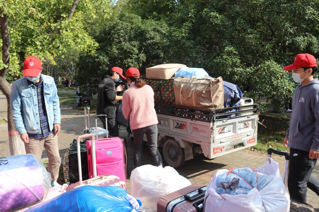 党员志愿者帮助新生搬运行李