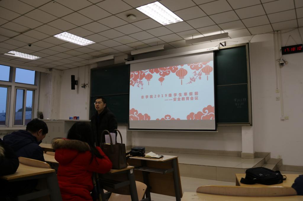 1月9日下午,学院在主校区南核心教学区4-301教室召开“农学院2019级学生寒假前安全教育会议”,执行院长黄进勇、党总支副书记李珏、副院长位芳及商海红老师参加会议。