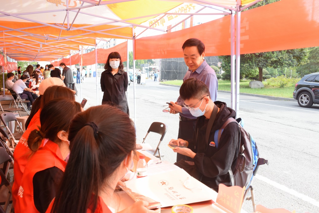 每一位新生进校后,便有相应的志愿者上前接收行李、指引路线、办理手续,积极主动为他们介绍报到流程和学院基本情况。哪里有需要,哪里就有志愿者。