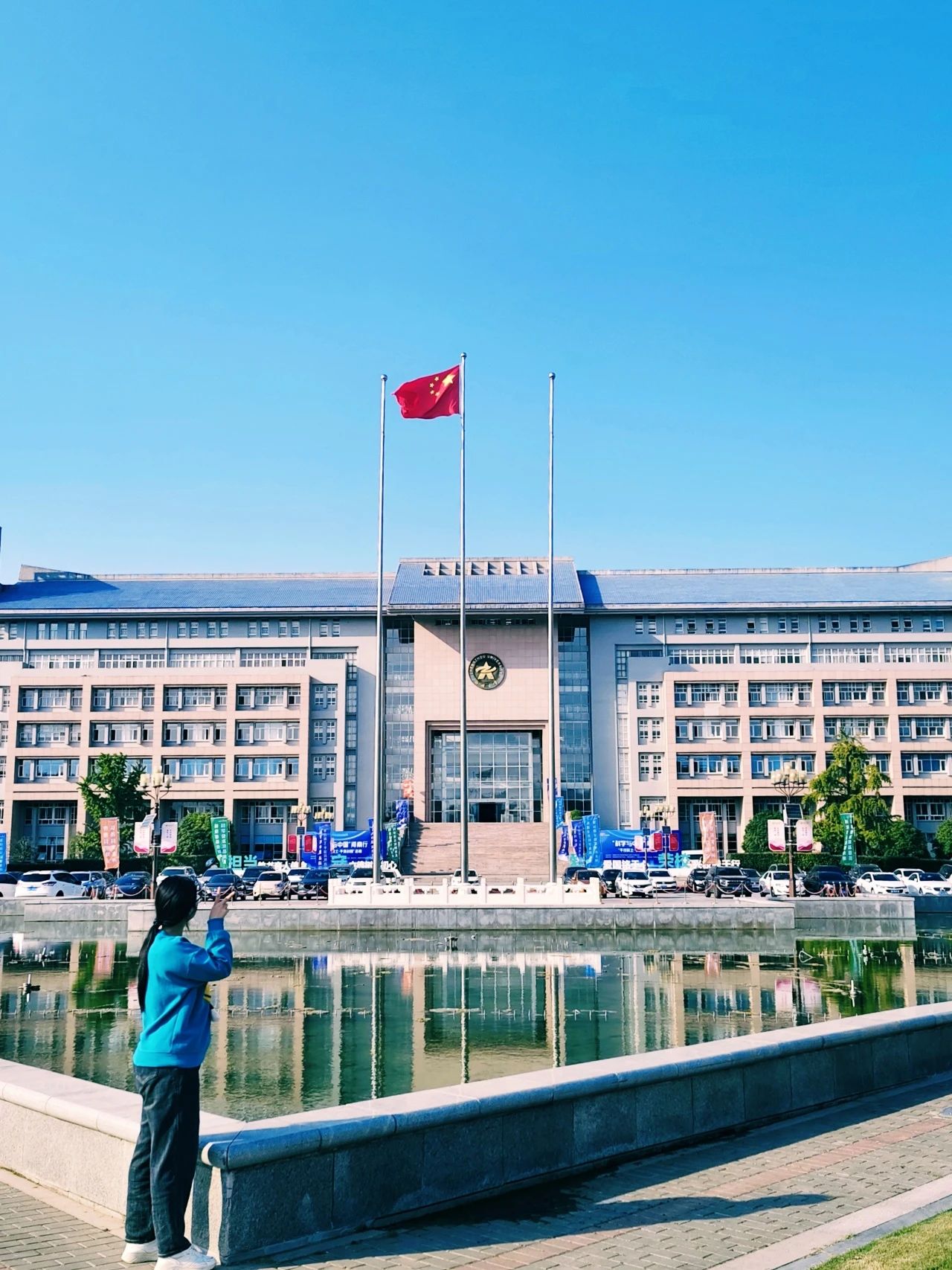 在国庆到来之际,我下课恰巧路过郑大行政楼,五星红旗在阳光的照射下格外闪耀,那随风飘扬的美好让我情不自禁与红旗合了个影,用照片来记录此刻的美好!