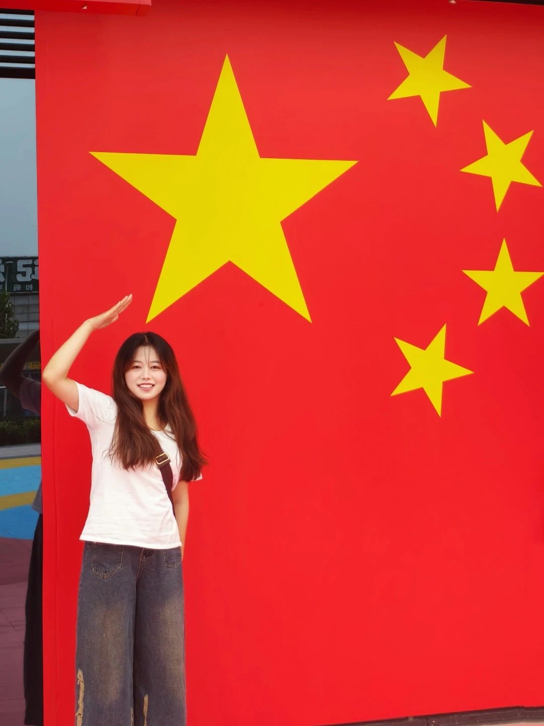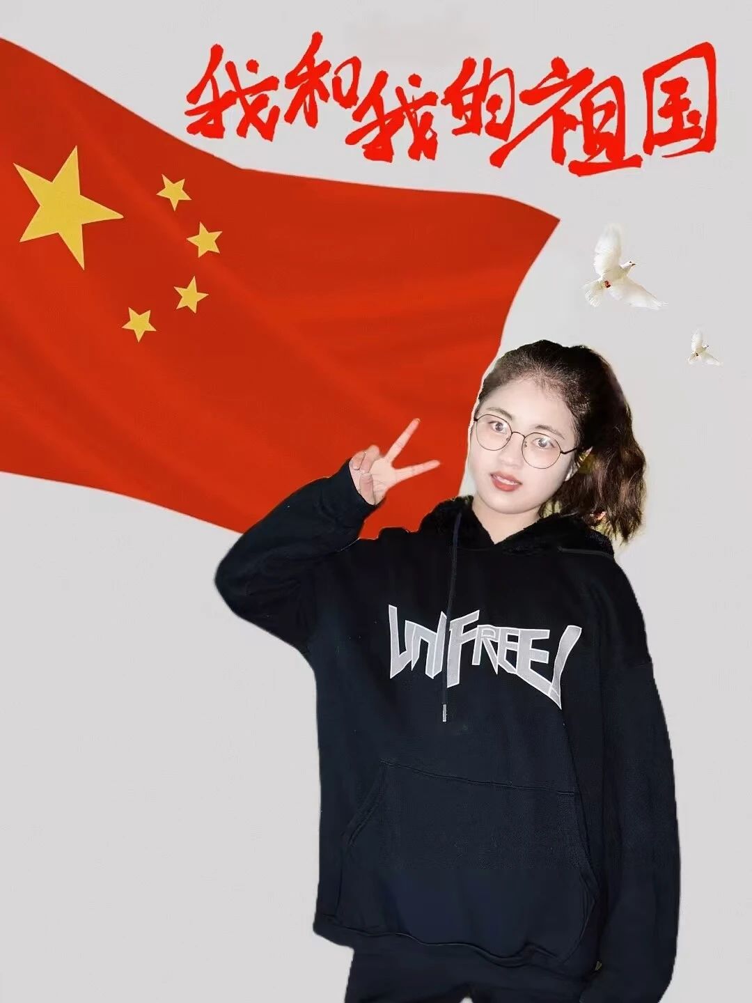 最美丽的颜色,那一定是中国红!借着祖国75周年华诞,我怀着激动的心情与国旗同框,鲜艳的中国红在身后,就仿佛有强大的力量庇佑着我。飞翔的和平鸽,表达了我身为中国人的使命。以青春之名,书写清澈的挚爱。