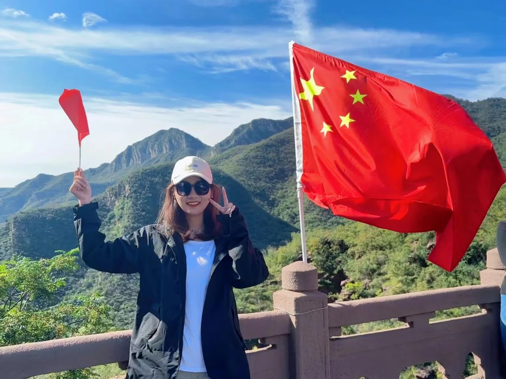五星红旗,随风飘扬,在云台山山脚下,我手持国旗,持起的不仅是一面旗帜,更代表着我对祖国未来的信心,以及我希望为祖国做贡献的美好愿望。国旗是国家的象征,带给我们阳光与希望,在阳光的沐浴下,我们茁壮成长,具有了青春的活力与生机。爱国就要大声说出来,生活在五星红旗下,我以合影留念,寄上我最真挚的祝福。愿青年的热情像国旗的这抹鲜红,永不褪色!