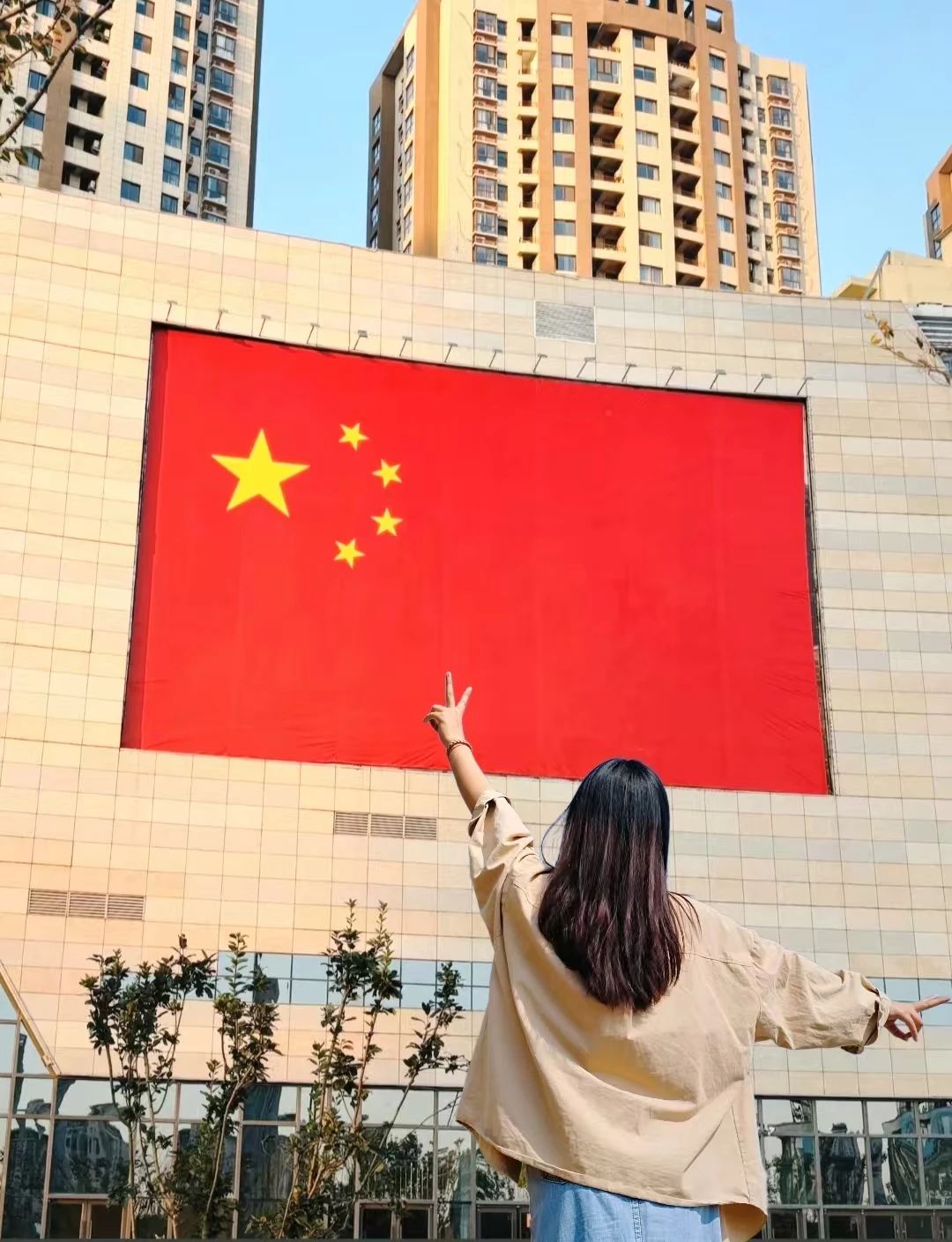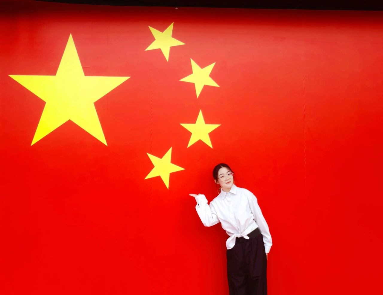 有一种骄傲,叫五星红旗;有一种深情,叫我爱你中国。今日,我与国旗合个影,在这一抹鲜艳的红色前,心中满是自豪与荣耀。家有山河锦绣,国有岁月芳华愿以寸心照华夏,且将岁月照山河。如果生命有颜色,那一定是中国红!国庆,一缕独属于中华儿女的中国红,映入眼帘。今日我站在这红旗下仰望,心中充满敬意。这片红色是先辈们用鲜血换来的,吾辈当自强,屹立不倒,昂首挺胸。