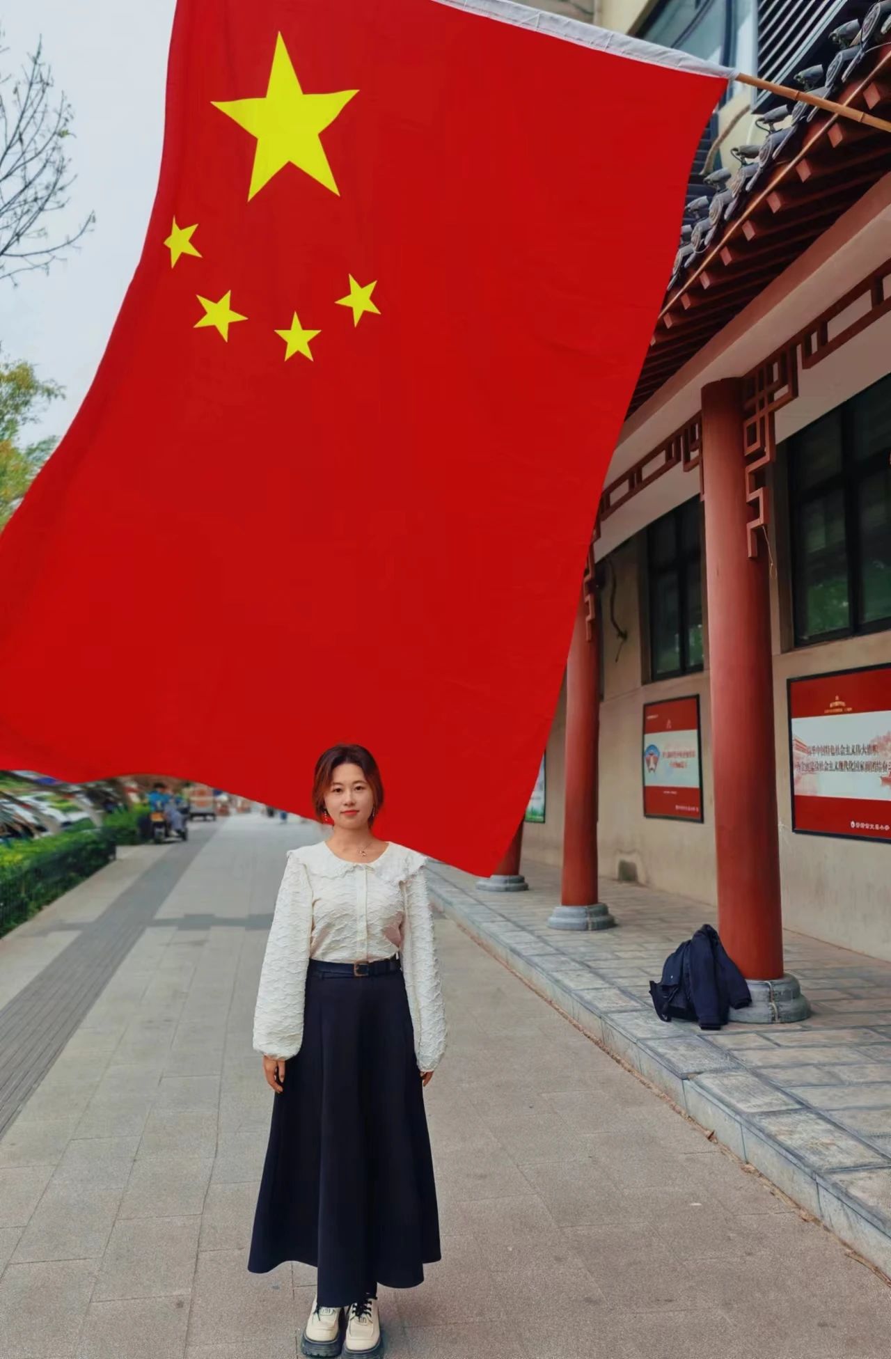全薪宇:站在街头,与鲜艳的五星红旗合影,感受到了浓浓的自豪与骄傲。激励我为祖国更好的明天而努力奋斗。