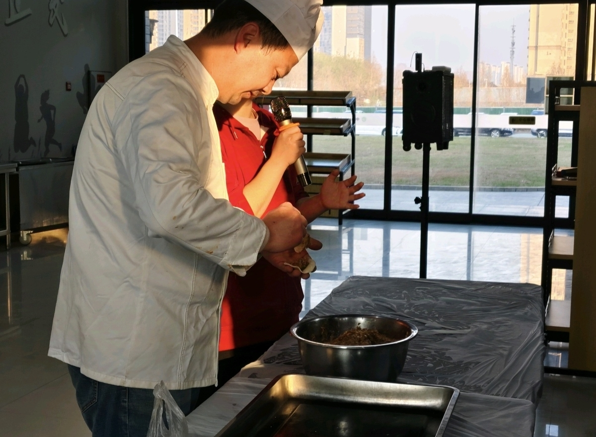 活动特别邀请了厨师教大家一起包饺子,活动现场洋溢着节日的喜庆气氛,师生们围坐在一起,包饺子、交流家常,共同感受农学院大家庭的温暖。大家三五成群,或站或坐,围绕着摆满饺子皮、馅料和工具的桌子,欢声笑语此起彼伏。