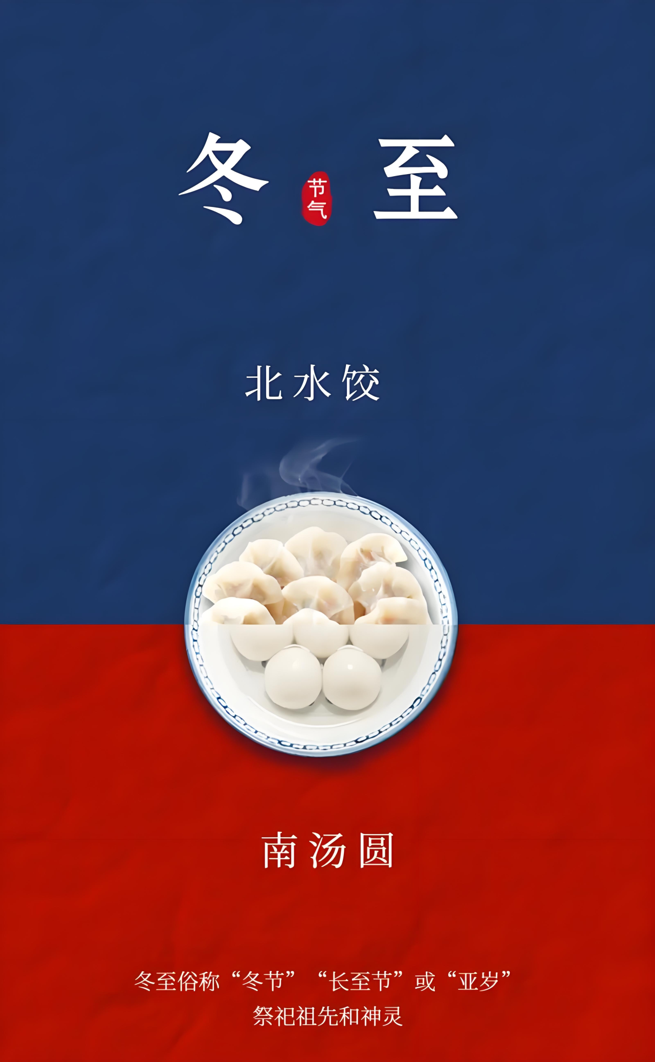 冬至,这个标志着一年中白昼最短、夜晚最长的节气,不仅是中国二十四节气中的重要节点,更是一个承载着丰富文化和民族情感的传统民俗节日。《汉书》中说:“冬至阳气起,君道长,故贺。”人们认为冬至是阴阳二气的自然转化,是上天赐予的福气。在这一天,朝廷会举行盛大的祭祀活动,祈求来年风调雨顺、国泰民安。而在民间,百姓们也会举行各种庆祝活动,以表达对生活的热爱和对未来的美好期望。饺子是冬至必不可少的美食。民间有“冬至不端饺子碗,冻掉耳朵没人管”的说法