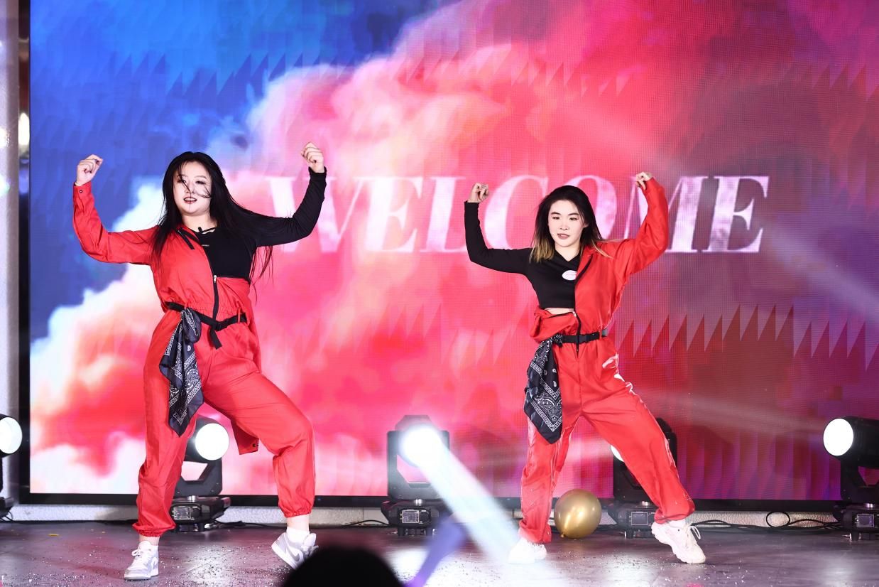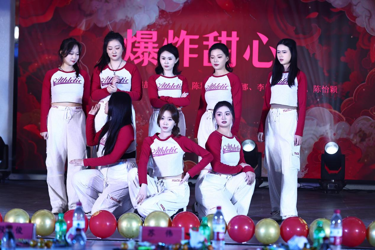 赵路瑶、陈雅雯、丁梦娜等8位同学带来活力舞蹈《爆炸甜心》、开场爆燃。