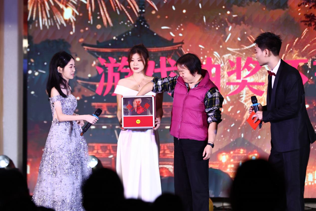 在精彩纷呈的节目表演过程中,穿插了趣味盎然的游戏环节与激动人心的抽奖环节。游戏环节里,师生们踊跃参与,打破了平日的拘束,在欢声笑语中增进了彼此间的情谊。无论是考验团队协作的接力游戏,还是充满趣味的猜谜挑战,都让现场气氛愈发高涨。而抽奖环节更是将晚会的氛围推向了高潮。随着主持人手中抽奖箱的晃动,每一个号码都承载着大家的期待。