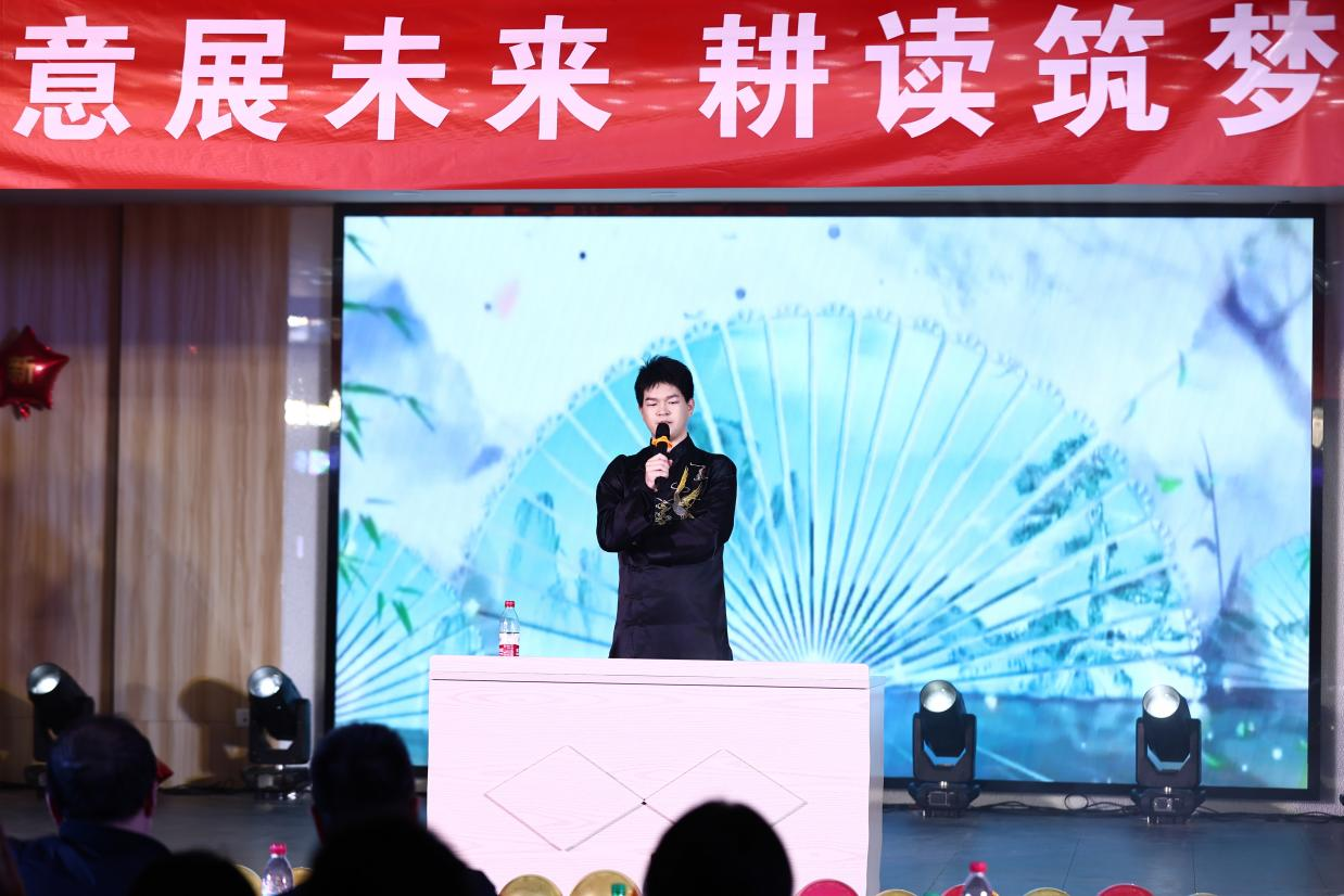 晚会在热烈的掌声中拉开帷幕,学院书记面向在场的近三百位师生,致以庄重而深情的开场辞。苏伟书记以沉稳而坚定的语调,代表学院向默默奉献、勤勉工作、团结进取的全体教师,以及遵守纪律、勤奋学习、勇于攀登知识高峰的同学们,致以最温馨的节日问候和最诚挚的新年祝福。他的话语中,不仅传递了对师生们一年来辛勤工作的肯定,也通过他们,向每一位家属提前送上了新年的问候。在对过去一年的工作进行全面而深刻的回顾时,苏伟书记不仅总结了学院的辉煌成就,更是将目光投向未来,对新的一年寄予了深切而美好的祝愿。在新的一年我们要开好局,起好步,迈向新征程,见到新气象。用实干赢得尊重,用实干获取希望,用实干创造未来。他的话语如同春风化雨,激励着每一位师生以更加饱满的热情和坚定的信念,迎接新的一年,共同书写学院更加辉煌的篇章。