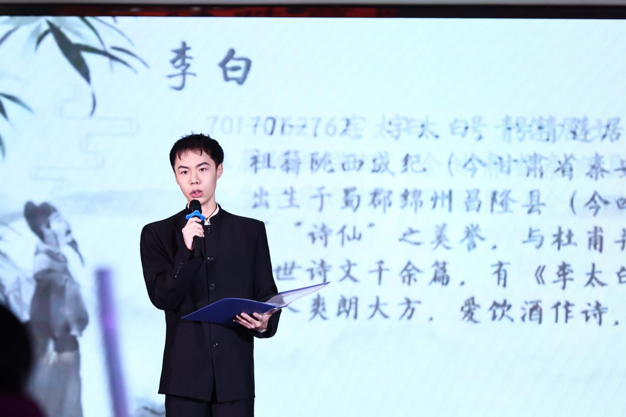 邢沄龙激昂朗诵《假如没有李白》,带领众人领略诗仙魅力。