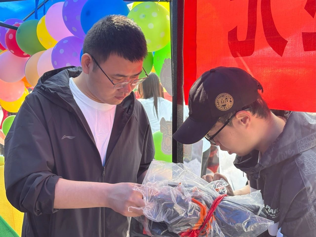紧张激烈的赛场之外,后勤保障工作同样构筑起赛事平稳运行的坚实后盾。比赛当日,学院团委书记冯小杰与辅导员殷湘坤早早抵达学院大本营,精心筹备后勤保障事宜。他们和志愿者们穿梭于物资存放区与休息场地之间,将一箱箱饮用水码放整齐,仔细检查面包、能量棒等补给品是否充足,为参赛同学的体力续航做好万全准备。