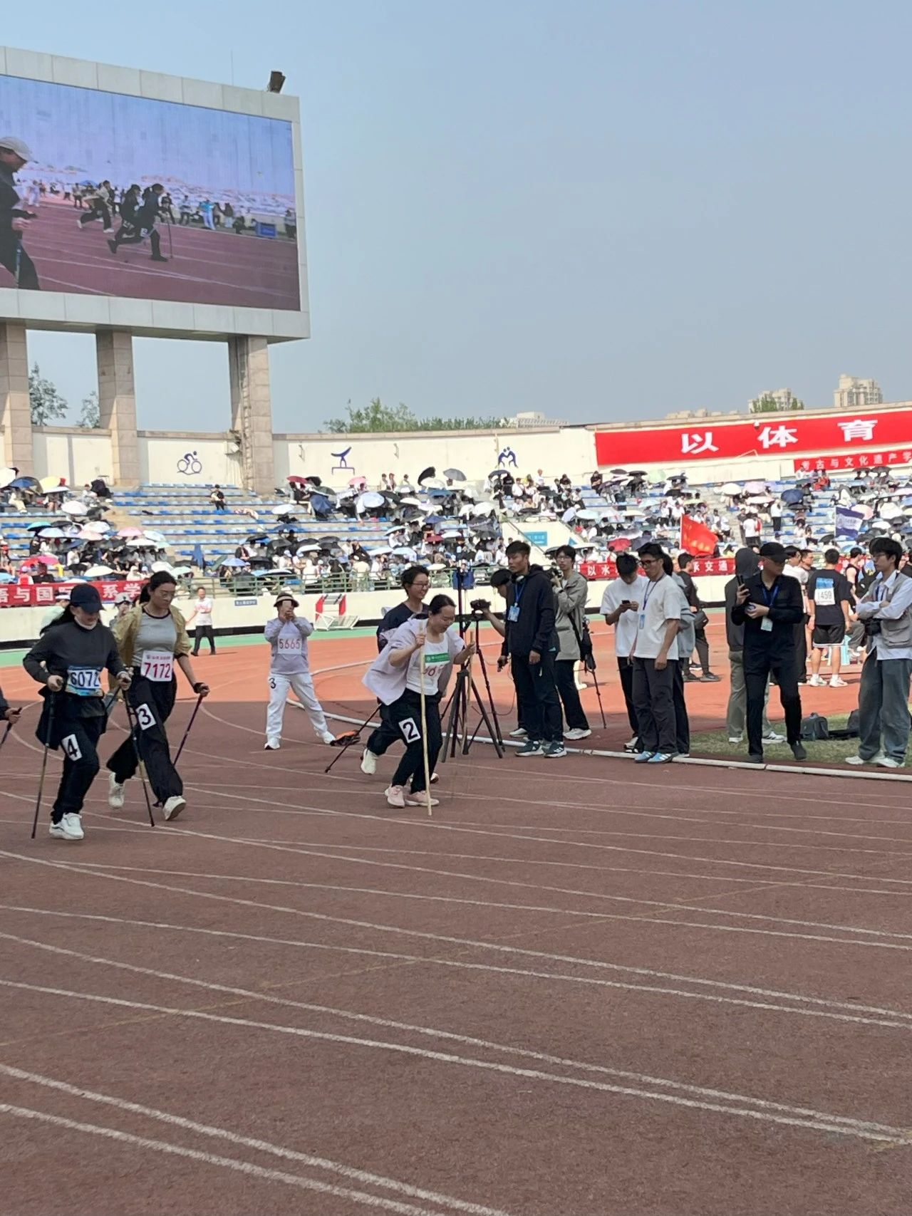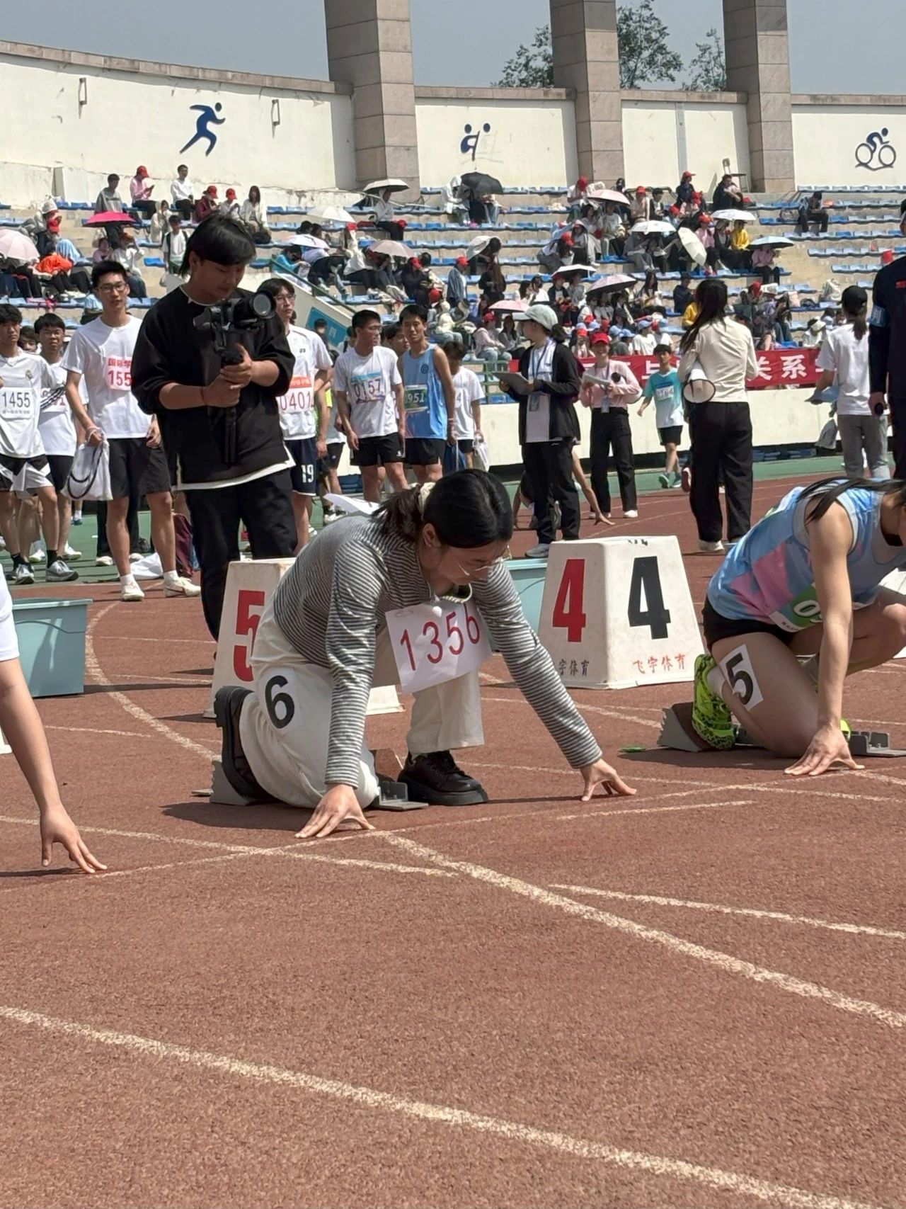 径赛:风声在耳畔呼啸,跑道上运动健儿们怀揣对运动的热爱,挥洒汗水,勇创佳绩;台上观众热情高涨,记录精彩,分享镜头里的“时代芳华”。