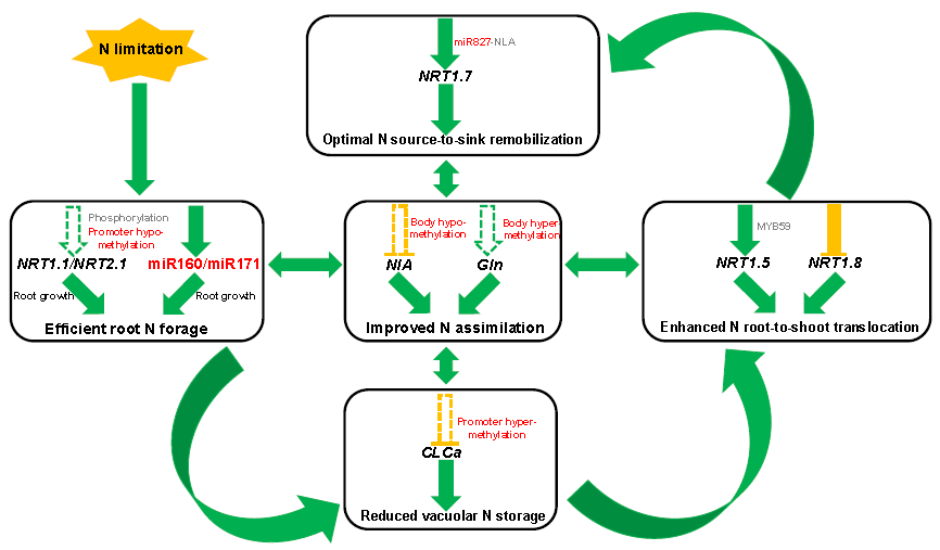 我国是世界上最大的化肥生产国和消费国。过量施用氮肥等化学肥料不仅产生巨大的生产成本,也造成了严重的环境污染。植物遗传资源研究与利用团队通过筛选低氮敏感突变体揭示了E3泛素连接酶NLA介导的低氮适应性机制,并结合全基因组miRNA差异表达谱和DNA甲基化指纹图谱揭示了适度的低氮环境可以提高油菜等作物的氮素利用效率的表观调控机制,并鉴定出氮素高效再分配核心调控基因AAP1为代表的氨基酸通透酶,为油菜氮素利用效率的遗传改良提供了优异的基因资源。相关研究成果分别发表在BMC Plant Biology和International Journal of Molecular Sciences等SCI杂志上。同时,“油菜氮素高效利用的生物学机制”研究获得2020年度省自然科学奖二等奖,华营鹏博士为第三完成人,郑州大学为第二完成单位。