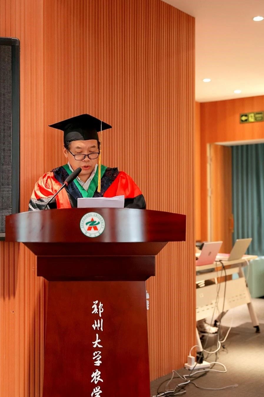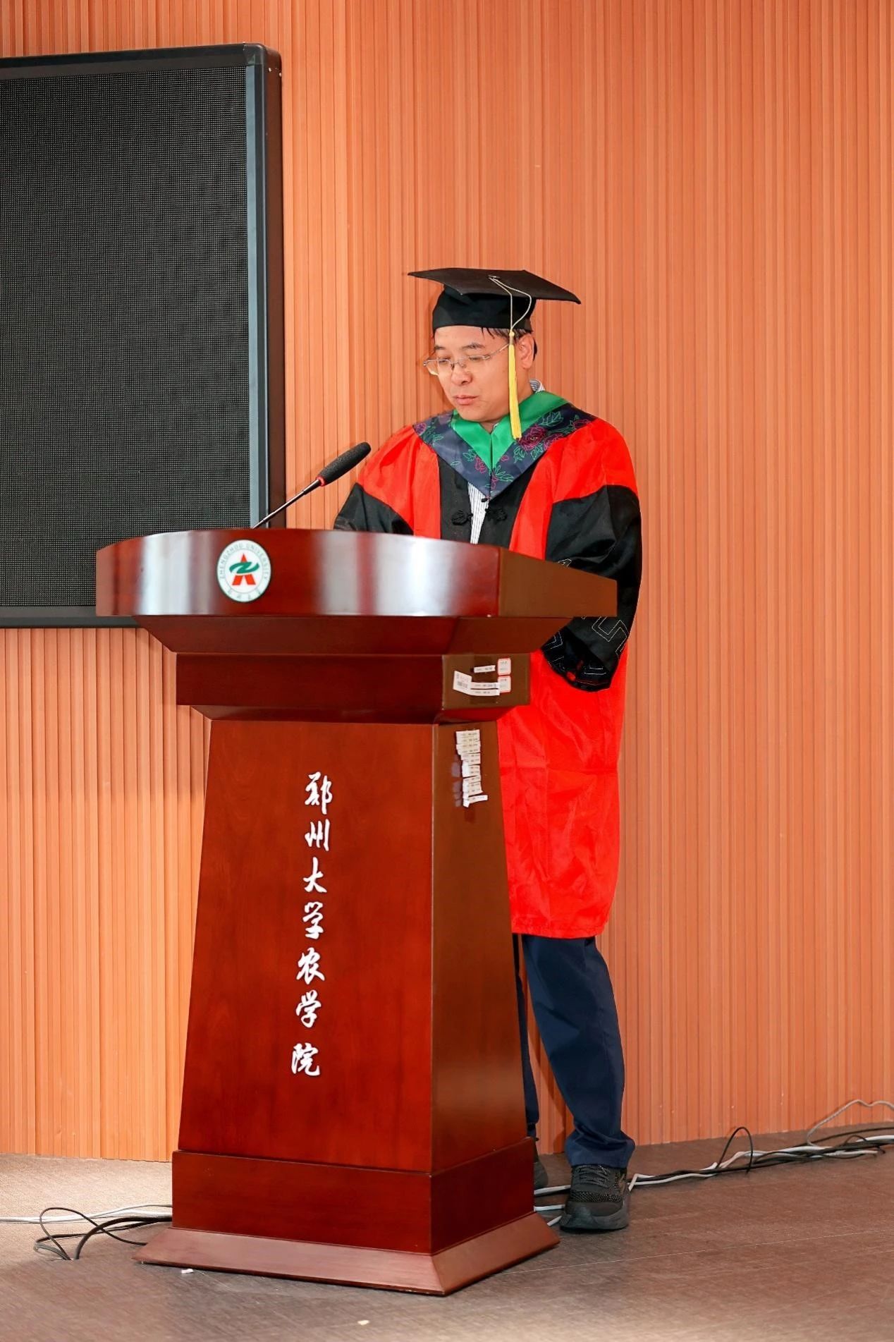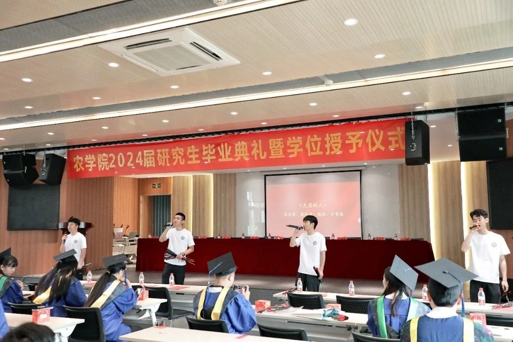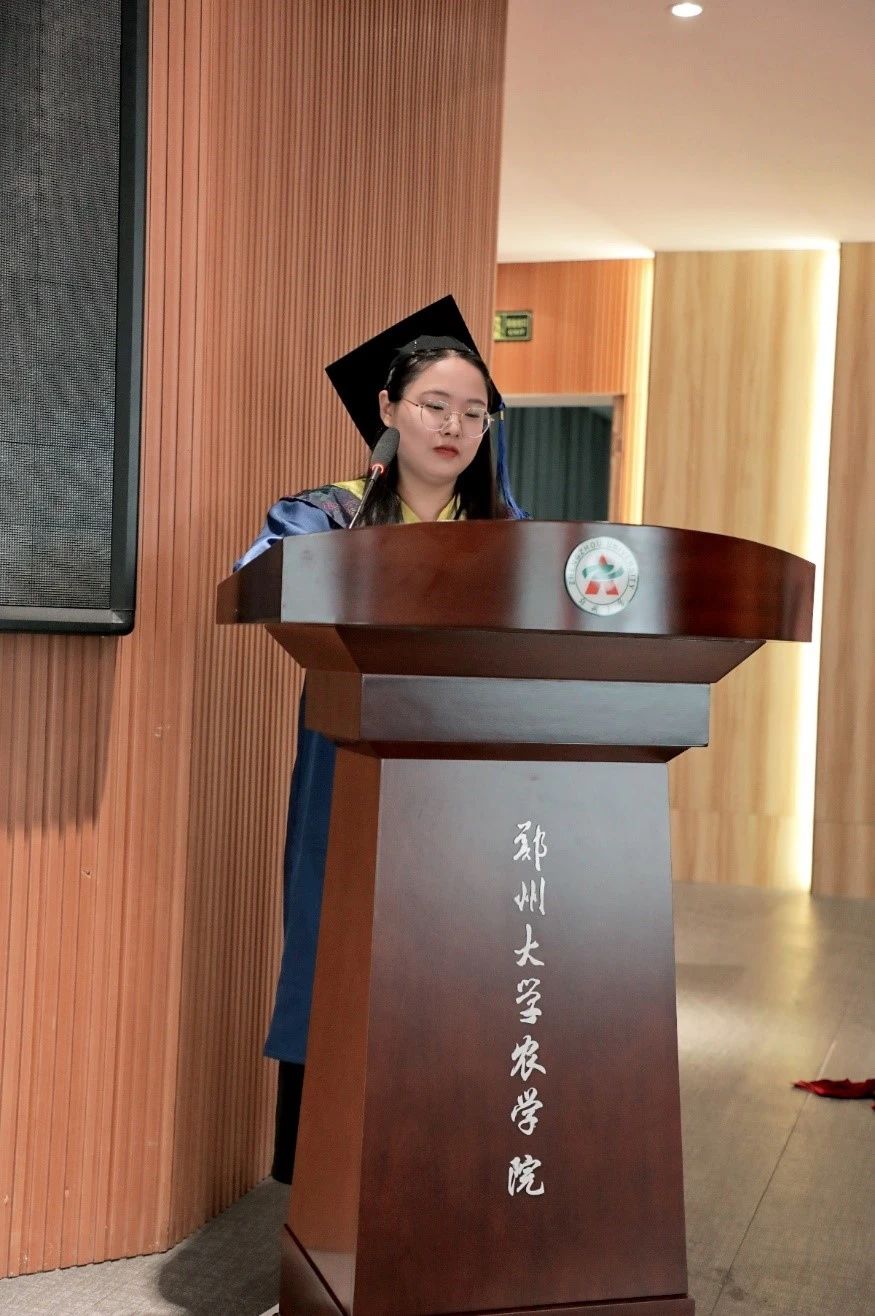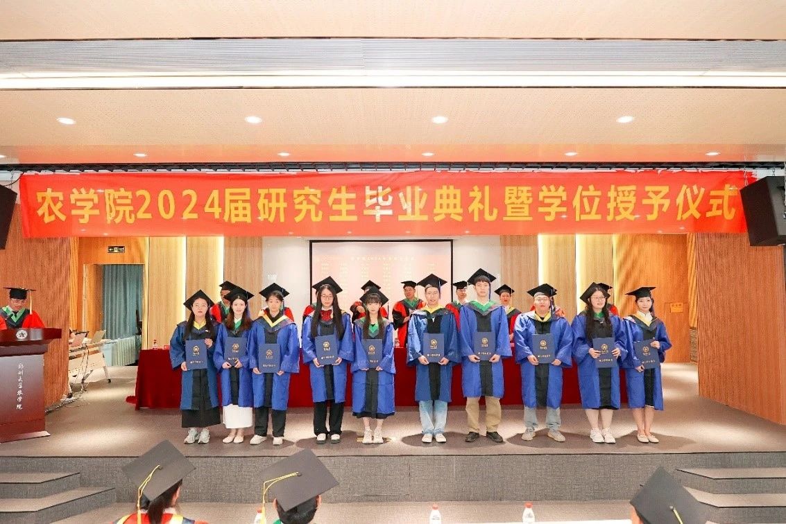 副院长位芳宣读郑州大学农学院 2024 年毕业生名单, 毕业生分批上台,党委书记苏伟、院长李付广、执行院长焦浈、田保明教授、谈重芳教授、党委副书记段武俊、副院长商海红、副院长王雁萍、副院长位芳、副院长华营鹏为毕业生拨流苏、颁发学位证书、合影留念。