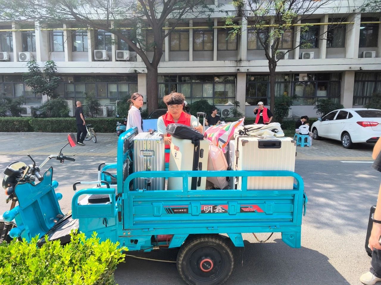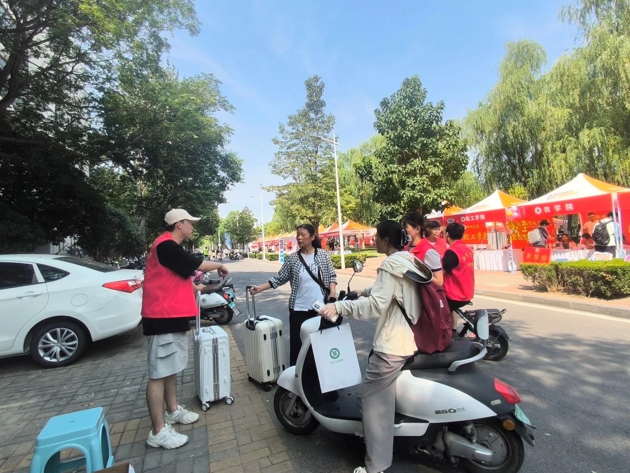 从南门志愿服务点进入,我们来到农学院迎新接待点,“前线阵地”早已搭建完毕,帐篷、桌椅、装饰牌等,迎新工作人员和志愿者们早已等候多时,他们肩上扛着帮助萌新的责任,内心怀着热情与奉献,为每一名新生指引道路,接拿行李办理报道手续,每个人都细心地为萌新们答疑解惑,让我们大声说一句:“你们辛苦啦!”