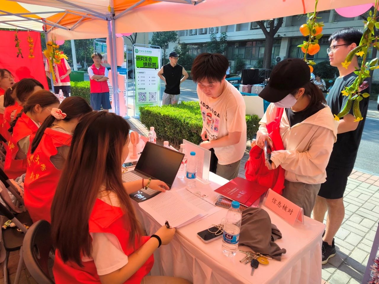 当天,校领导王利国副书记和胡少伟副校长到各个迎新点慰问研究生迎新工作,学院党委书记苏伟、段武俊副书记、团委书记冯小杰等相关部门负责人亲临研究生新生报到点,了解新生报到情况及迎新进程,慰问在迎新一线服务的工作人员和志愿者,并与前来报到的研究生新生及家长亲切交流,合影留念。