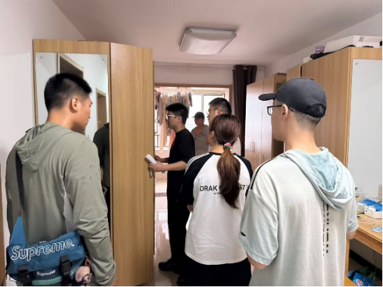 检查中,逐一查验宿舍安全设施完好情况,包括床架桌椅的稳固度、灯具门窗的功能、电源插座的安全性,以及卫生间的清洁、排水与通风,并细致核验。对于发现的问题,现场可处理的立即整改,需专业维修的同步报修,确保在新生报到前全部落实,为消防安全和居住舒适度提供坚实保障。