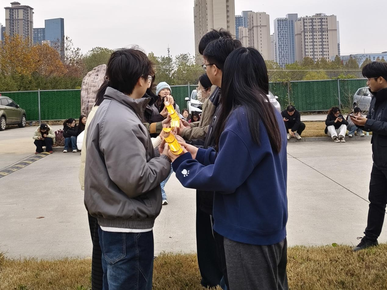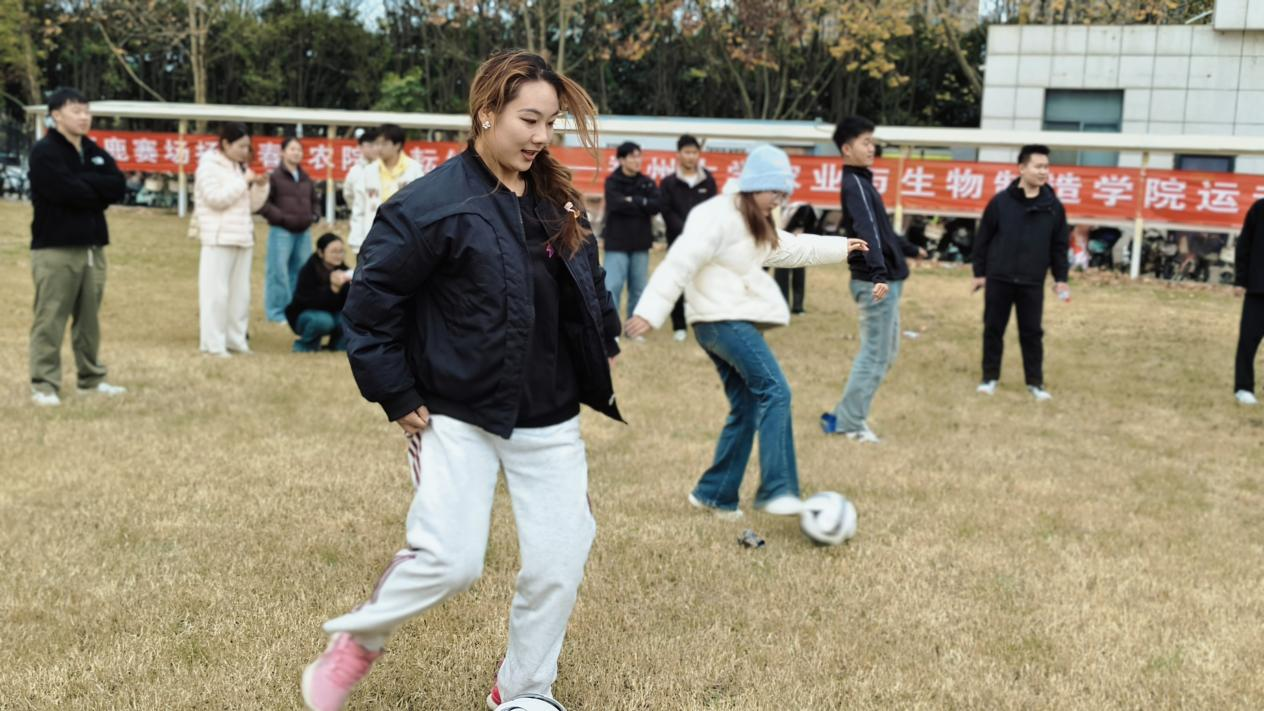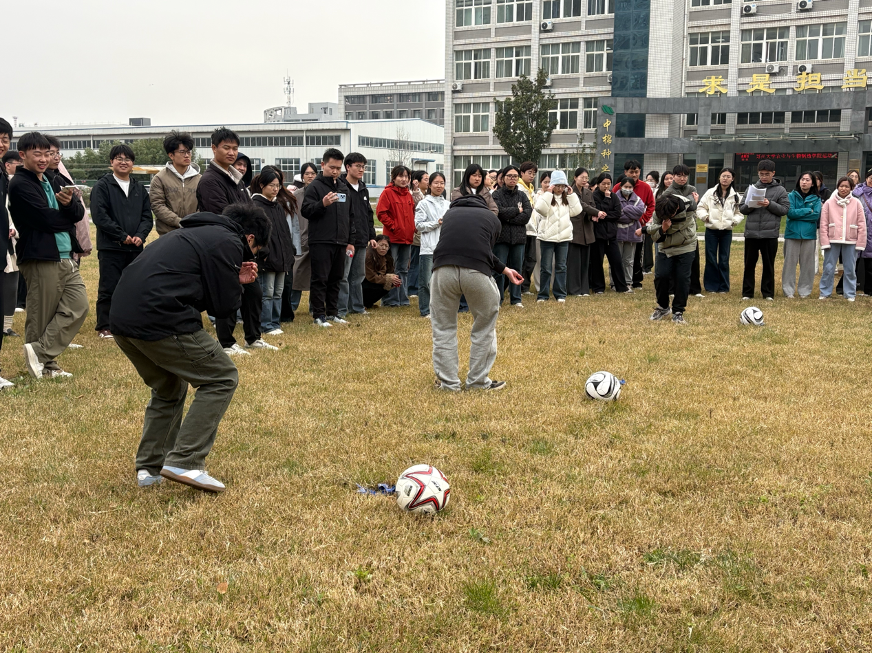 学生组设置多类趣味项目,包括注重团队配合的“球行万里”“一圈到底”,以及富有趣味性的“你划我猜”“旋转定点射门”活动项目。比赛中,同学们热情投入,配合默契,现场气氛热烈,充分展现了农业与生物制造学院师生团结协作、勇于挑战的精神风貌。