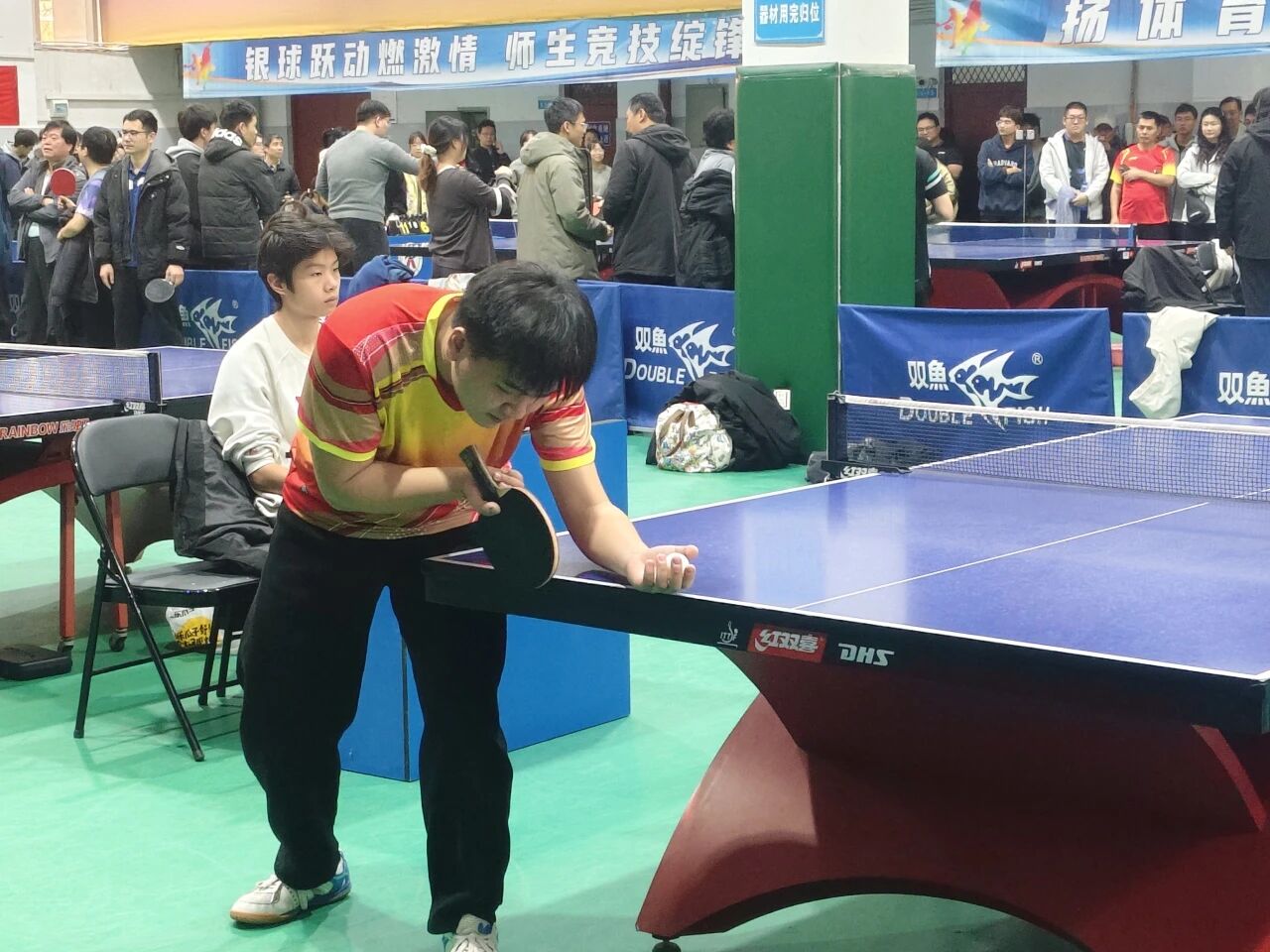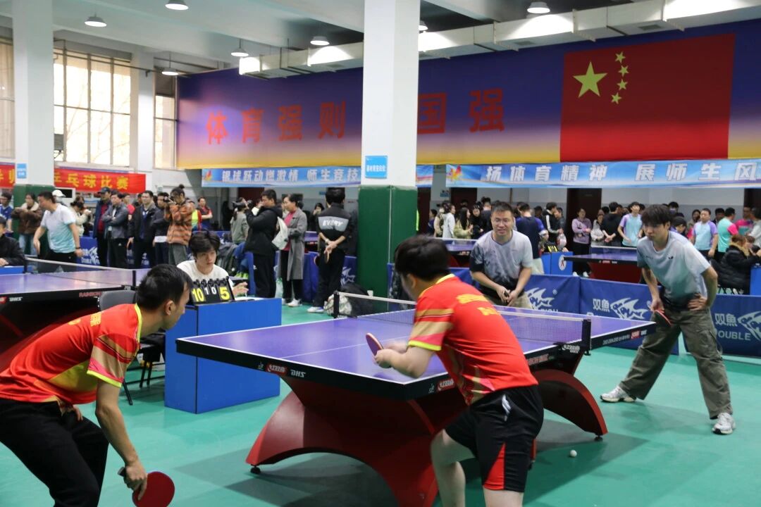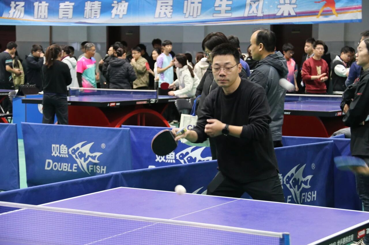 本次赛制五局三胜,包括教师男、女单,学生男、女单以及师生混双,每局三局两胜,11分制。赛前,导师与学生们认真热身,相互探讨战术,眼神中满是期待与信任;赛场上,银球飞舞间,既有学生们的青春灵动,发球刁钻、扣杀迅猛,也有导师们的沉稳老练,回球精准、防守严密。每一次默契的眼神交汇,每一个精彩的扑救回合,都引来场边观众的阵阵欢呼。有的组合主打 “攻防互补”,导师稳控节奏,学生主动出击;有的搭档则以 “灵活应变” 见长,你来我往间尽显战术智慧,赛场之上,竞技的激情与师生的温情完美交融。在第一轮24进16的比赛中,我院虽然以1:3的比分败于化学学院,但在和地球科学与技术学院的比赛中,拿下三场全胜的战绩,成功晋级接下来的淘汰赛。