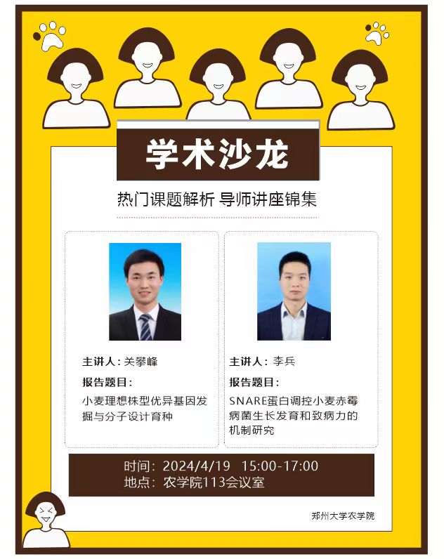4月19日下午3点,农学院113会议室,由学院诱变育种创新中心组织开展农学院第1期院内学术沙龙活动,由李兵副研究员和关攀峰副研究员担任本期主讲人。