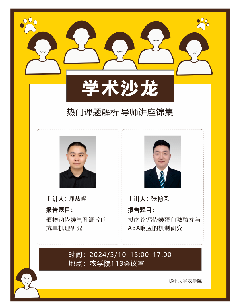5月10日下午3点,农学院113会议室,由学院作物育种创新中心组织开展农学院第3期院内学术沙龙活动,由师恭曜、张翰风两位老师担任本期主讲人。