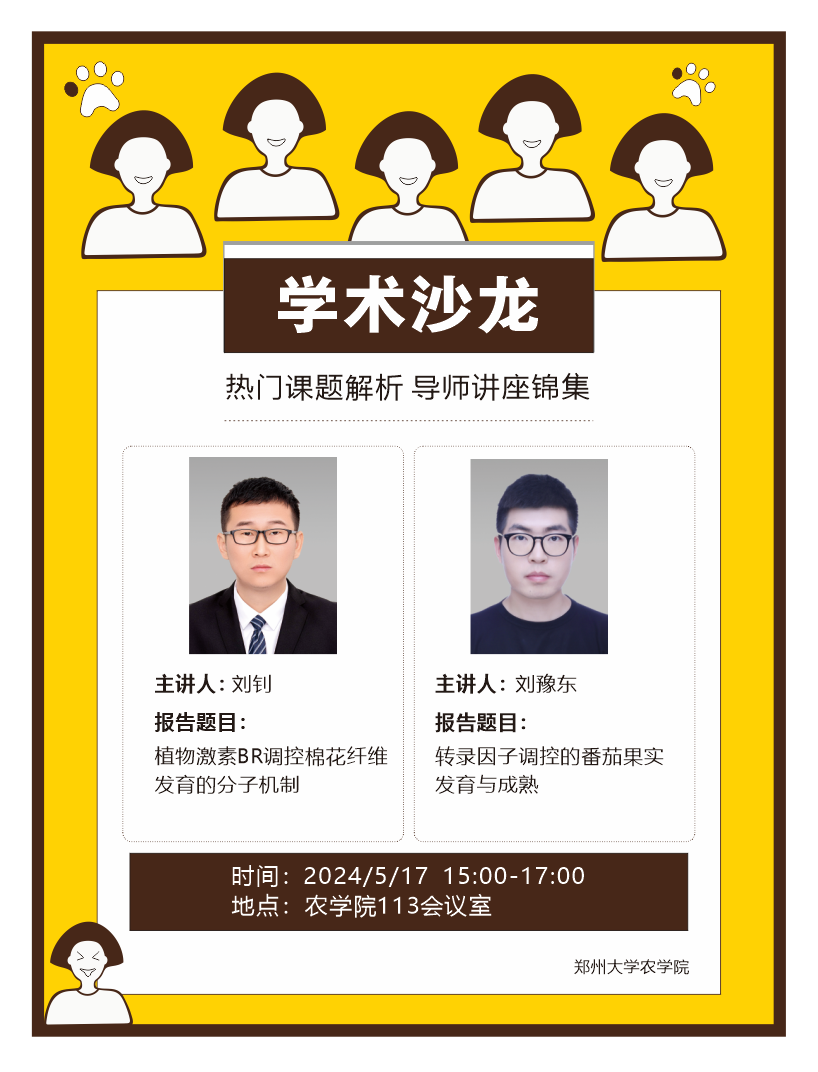 5月17日下午3点,农学院113会议室,由学院合成生物学创新中心和乡村振兴创新中心组织开展农学院第4期院内学术沙龙活动,由刘钊(副研究员)和刘豫东(直聘研究员)担任本期主讲人。