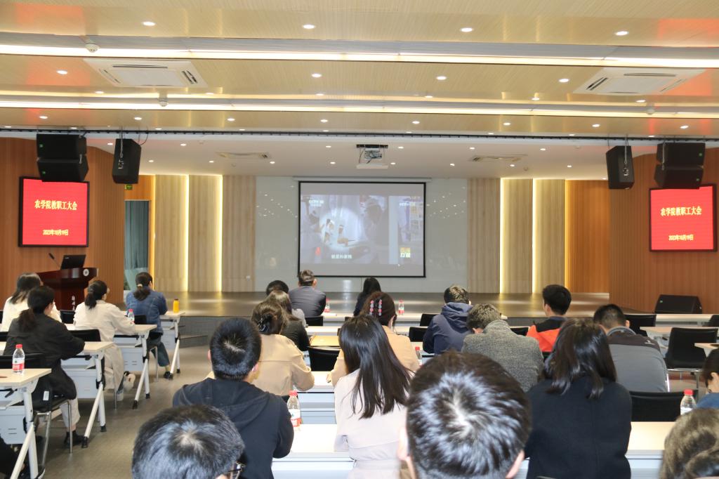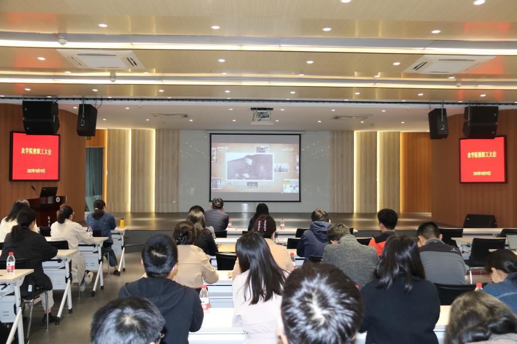 会议最后,副院长焦浈向全体教师传达了校党委书记别荣海同志到农学院调研考察后的指示精神。白付理强调,学院要紧密结合别荣海书记这次调研考察农学院后的指示精神,认真落实学校的决策部署,继续发扬蓬勃向上的精神风貌,上下一条心,在服务区域经济发展、有组织科研方面做出新的更大贡献,在以后的工作更上一层楼。